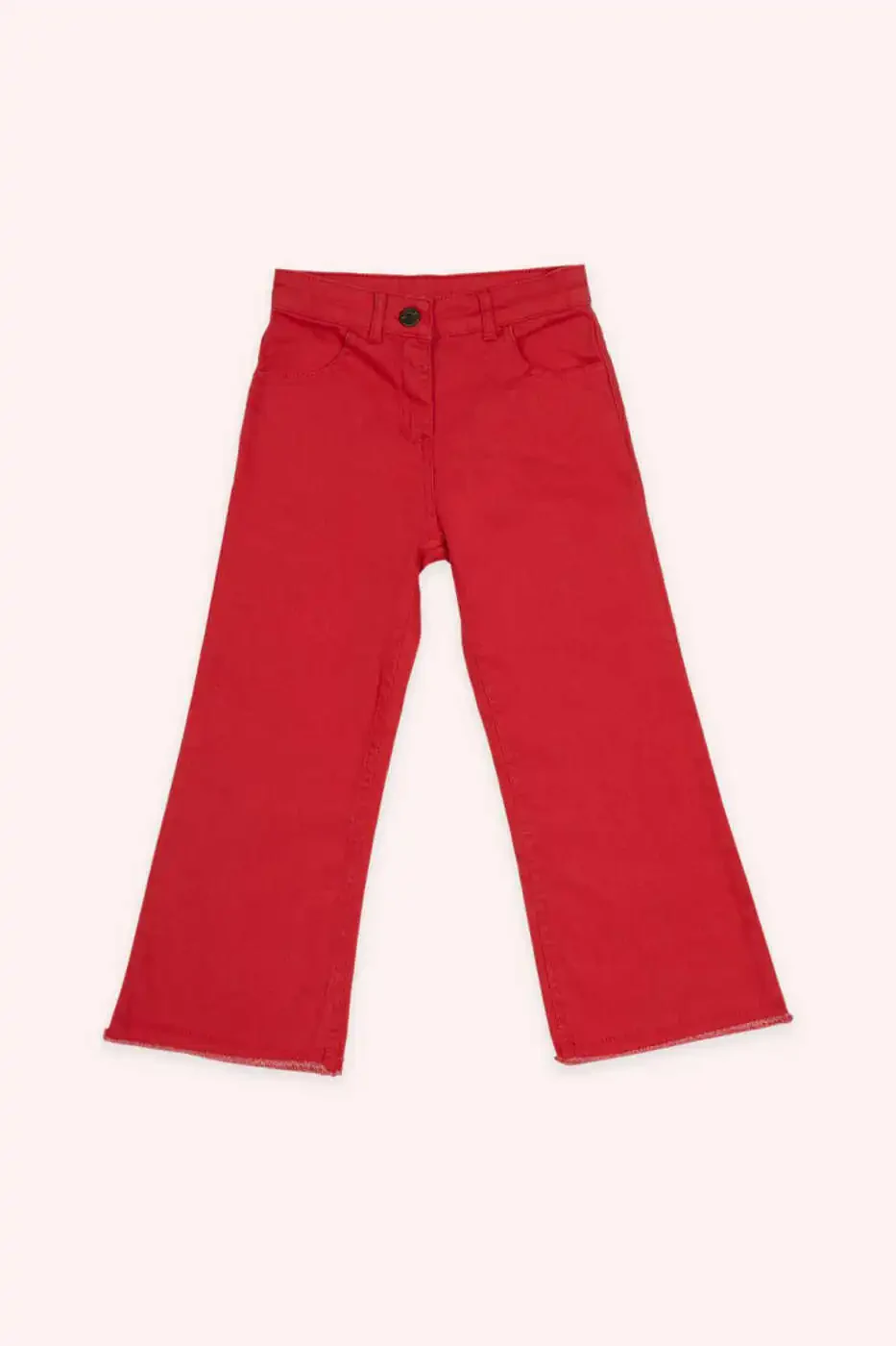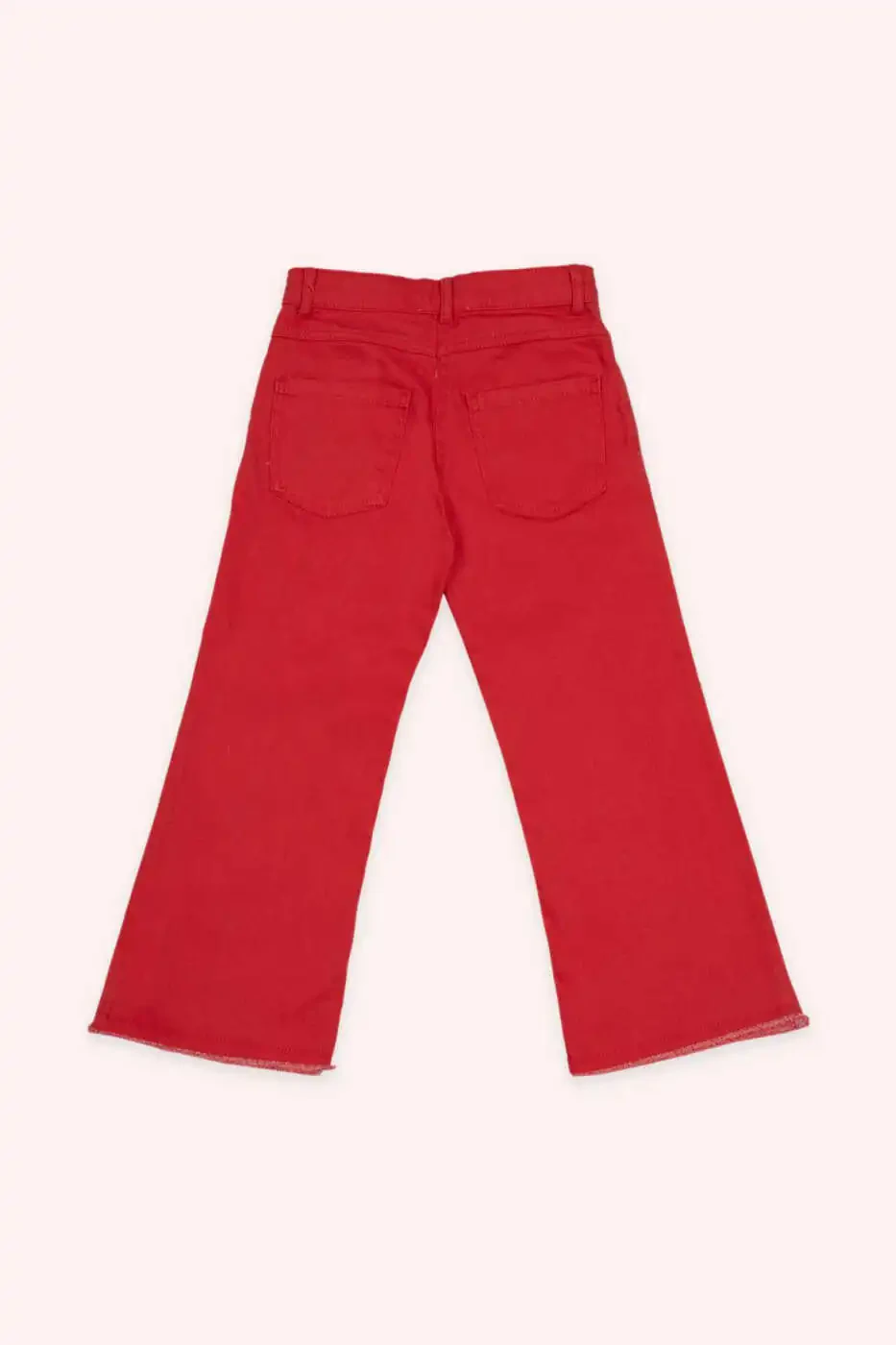 An energetic, stylish, and indispensable piece for girls: Girls' Pocketed Red Denim Pants! These denim pants, designed with this vibrant red tone, will add joy and color to the wardrobes of little fashion lovers. Combining the durability of classic denim with a modern cut, these pants are specially designed to allow children to move comfortably at all times, whether at school or on the playground. The high-quality denim fabric is suitable for long-term use and perfectly adapts to children's endless energy and mobility. Thanks to the soft texture of the fabric, it does not cause itching throughout the day and is skin-friendly. Its flexible structure offers maximum comfort and freedom of movement while running, jumping, or climbing. While the red color provides an energetic and cheerful look, it can also be easily combined with different colored tops and shoes. It becomes one of the most versatile pieces in the wardrobe, compatible with a wide range from basic t-shirts to elegant blouses, from sneakers to ballet flats.