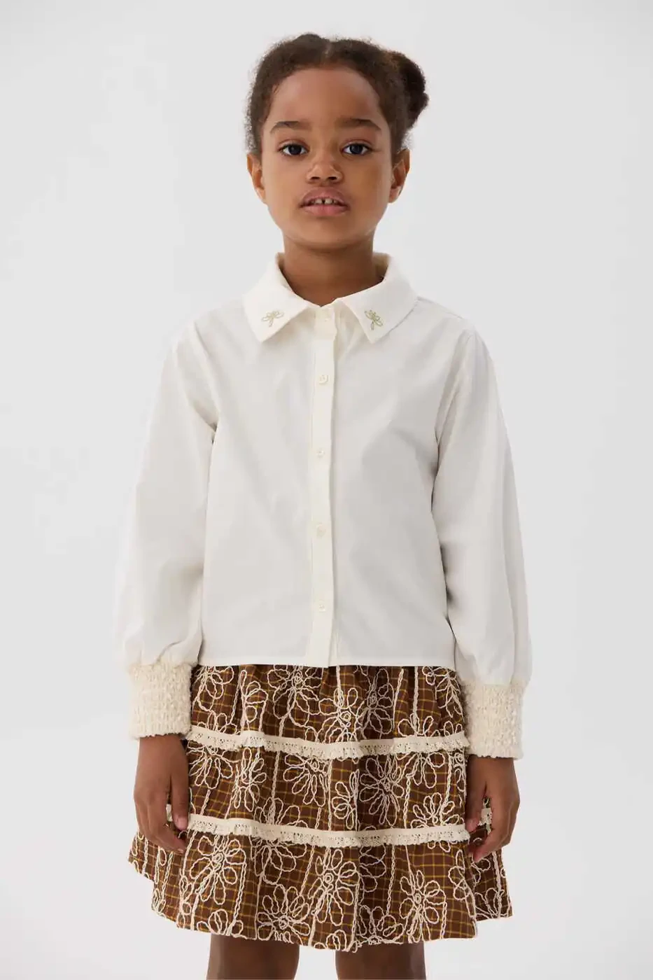 Nozik va zamonaviy dizayni bilan kichkina malikaning garderobida ajralmas bo'lib qoladigan ekru rangli qiz bolalar bluzkamiz sifatli matodan tikilgan va qulay kesimi bilan kun bo'yi qulaylik beradi. Har kuni kiyish uchun mo'ljallangan bu bluzka maxsus kunlarda ham zamonaviy ko'rinish yaratishga yordam beradi.