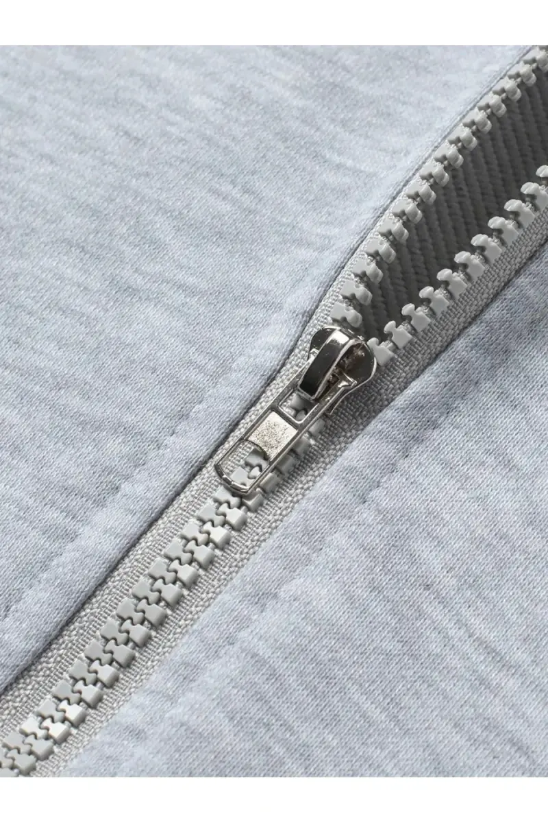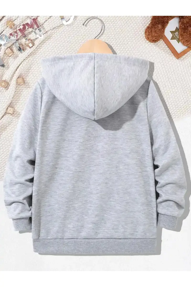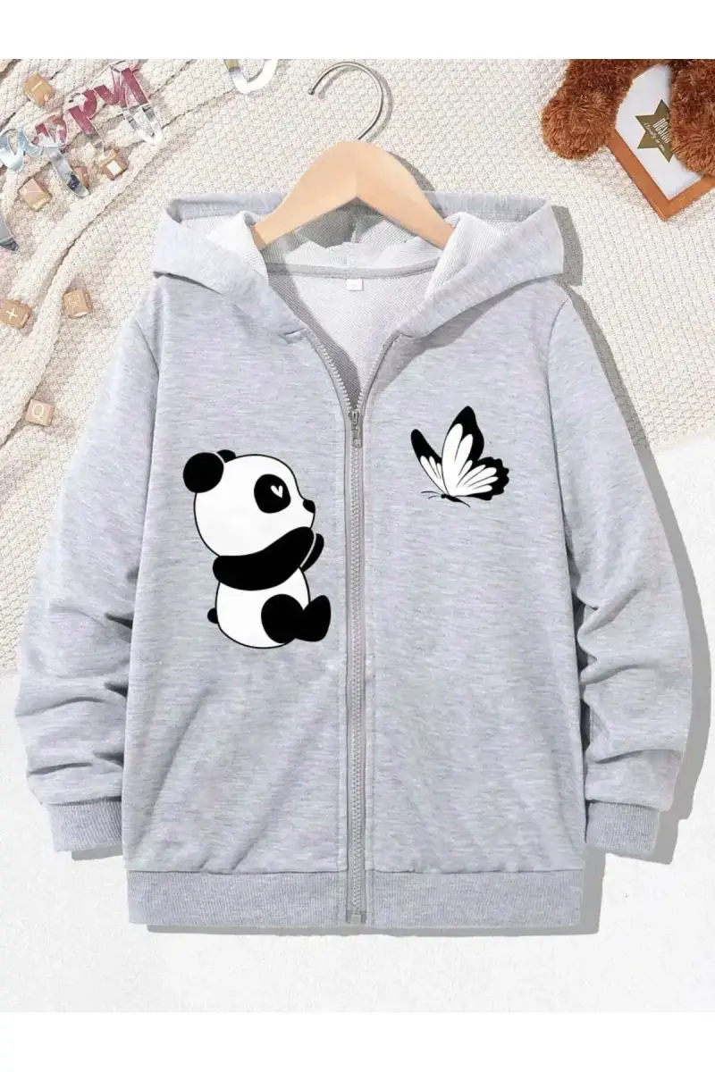 Kız Çocuk Gri Panda Kelebek Baskılı Kapşonlu Fermuarlı Hırka-