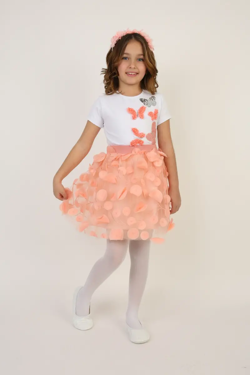 Çocuklarınızın özel günlerde ve günlük kullanımda şıklığını ve rahatlığını ön planda tutan Kız Çocuk Somon Renk Kelebek Detaylı Tişört Yapraklı Etek Takımımız, NACAR ÇARŞI kalitesiyle beğeninize sunuluyor. 23 Nisan ve 29 Ekim gibi milli bayramlarda, okul gösterilerinde veya özel kutlamalarda minik prenseslerinizi göz kamaştıracak bu özel tasarım, Türkiye'de üretilmiş olup yerel üretimin avantajlarını taşımaktadır. Ürünümüz, normal kalıbı sayesinde çocuğunuzun giydiği bedeni tercih ederek mükemmel bir uyum yakalamanızı sağlar. Görsellerdeki beden ölçüleri tablosundan da detaylı bilgiye ulaşabilirsiniz. Bu şık takım, iki parçadan oluşmaktadır: somon renkli, kelebek detaylı bir tişört ve yapraklı etek. Tişörtün baskısız tasarımı, sadeliği ve zamansızlığı temsil ederken, eteğin yaprak detayları ise kıyafete hareket ve canlılık katmaktadır. Bel kısmında kemersiz kullanım rahatlığı sunan etek, çocuğunuzun gün boyu konforlu hissetmesini sağlar. Basic koleksiyonun bir parçası olan bu takım, günlük kullanım için de idealdir. İnce kumaşı ve astarlı yapısı sayesinde yaz aylarında serin ve rahat bir kullanım sunar. Regular silueti, vücuda tam otururken hareket özgürlüğünü kısıtlamaz. Düz kesimi sayesinde her türlü ayakkabı ve aksesuarla kolayca kombinlenebilir. Cepsiz yapısı, modern ve temiz bir görünüm kazandırırken, minimalist tarzı sevenler için ideal bir seçimdir. Kutusuz olarak sunulan bu ürün, ekstra maliyetten tasarruf etmenizi sağlar. Çocukların enerjisini yansıtan ve onların kişiliğini ön plana çıkaran bu şık takım, gardıroplarının vazgeçilmezi olacak. Unutmayın, bu üründen en fazla 10 adet sipariş verebilirsiniz. 10 adedin üzerindeki siparişler Trendyol tarafından iptal edilebilir. Kurumsal siparişler için farklı limitler belirlenmektedir. Ürünü beğenmediğiniz takdirde 15 gün içinde ücretsiz iade edebilirsiniz. Detaylı bilgi için iade koşullarını inceleyebilirsiniz. Aksesuarlar kombine dahil değildir. Kız Çocuk Somon Renk Kelebek Detaylı Tişört Yapraklı Etek Takımımız ile çocuğunuzun özel günlerde ve günlük hayatta fark yaratmasını sağlayın!