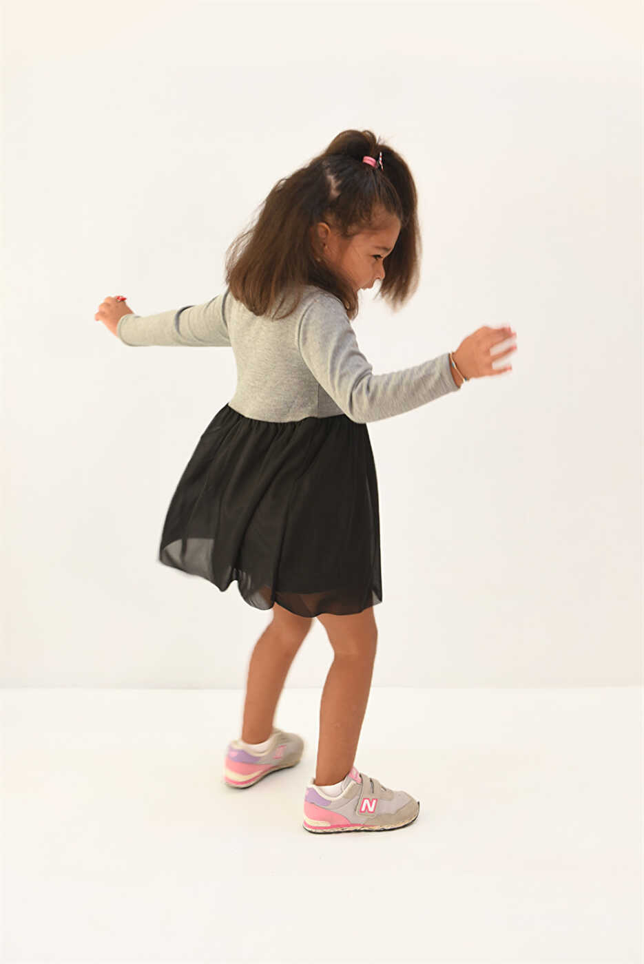 Küçük prensesleriniz için tasarlanmış bu büyüleyici elbise, zarif tül detaylarıyla günlük yaşamlarını sihirli bir dokunuşla süsleyecek. Yumuşak ve nefes alan triko kumaştan üretilen elbise, gün boyu konforlu bir deneyim sunarken, tül detaylarıyla da şıklığı ön plana çıkarıyor.