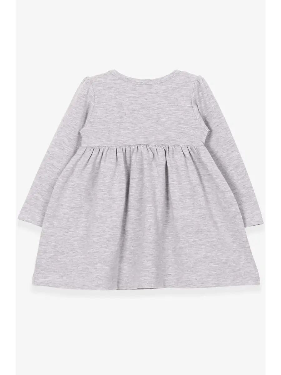 Kız Çocuk Uzun Kollu Elbise Gri Melanj | %100 Pamuk, Baskılı, Rahat Kalıp