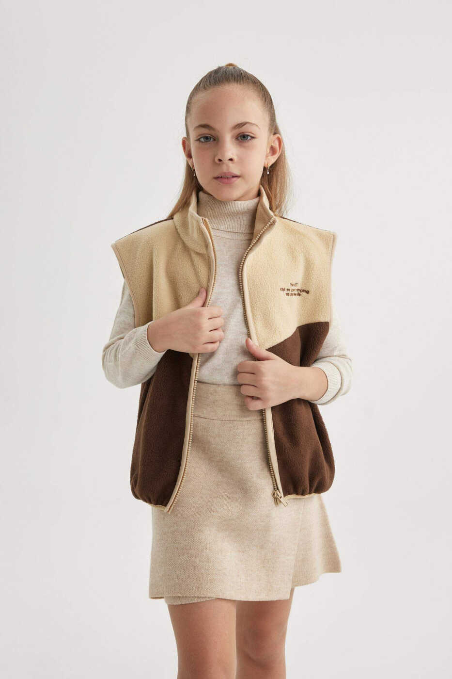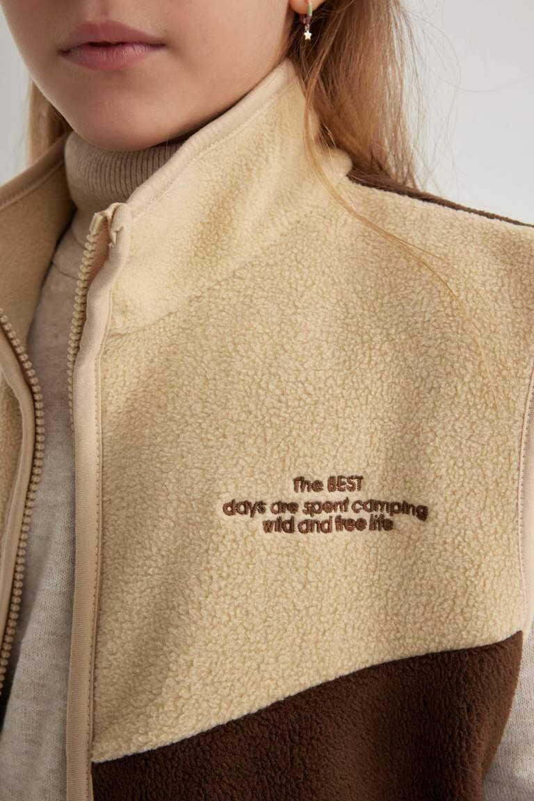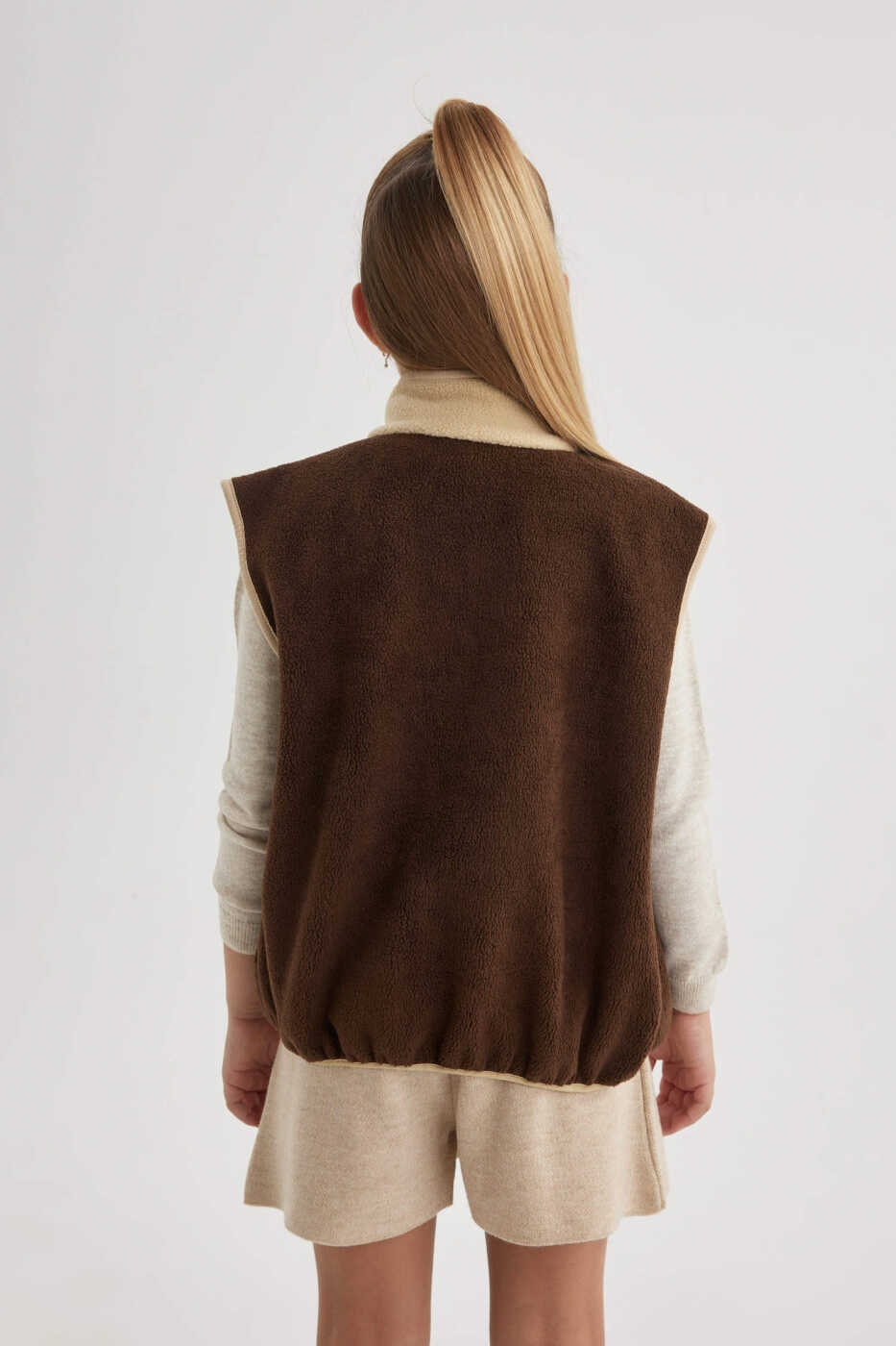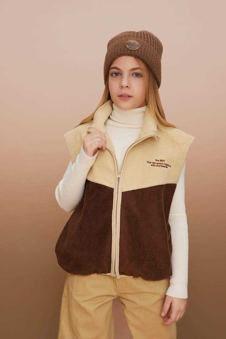 Kız Çocuk Yarım Balıkçı Yaka Pelüş Hırka Kahve