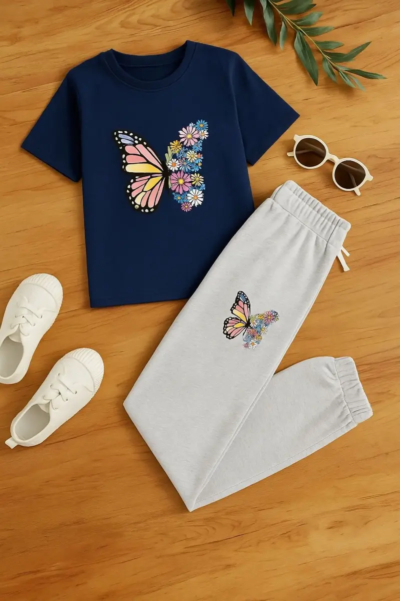Bu ürün MORNİNG KİDS tarafından gönderilecektir.Kampanya fiyatından satılmak üzere 100 adetten fazla stok sunulmuştur.İncelemiş olduğunuz ürünün satış fiyatını satıcı belirlemektedir.Bir ürün, birden fazla satıcı tarafından satılabilir. Birden fazla satıcı tarafından satışa sunulan ürünlerin satıcıları ürün için belirledikleri fiyata, satıcı puanlarına, teslimat statülerine, ürünlerdeki promosyonlara, kargonun bedava olup olmamasına ve ürünlerin hızlı teslimat ile teslim edilip edilememesine, ürünlerin stok ve kategorileri bilgilerine göre sıralanmaktadır.Bu üründen en fazla 10 adet sipariş verilebilir. 10 adedin üzerindeki siparişleri Trendyol iptal etme hakkını saklı tutar. Belirlenen bu limit kurumsal siparişlerde geçerli olmayıp, kurumsal siparişler için farklı limitler belirlenebilmektedir.15 gün içinde ücretsiz iade. Detaylı bilgi için [page="return_conditions"]tıklayın .- Yaz aylarında rahatlıkla tercih edilebilecek, kelebek baskılı lacivert çiçek desenleriyle süslenmiş kız çocuk tişört ve eşofman takımı.- İki parçadan oluşan sethem şıklığı hem de konforu bir arada sunarak çocukların günlük kullanımına uygun.- DTF baskı tekniği ile üretilmiş canlı ve kalıcı renkler, uzun süreli kullanımda bile ilk günkü gibi görünmesini sağlar.- Lastikli paça tasarımı sayesinde hareket özgürlüğünü kısıtlamaz ve kolay giyip çıkarmayı mümkün kılar.- Şardonlu dokusuyla yumuşak bir his verirken, orta kalınlığı mevsim geçişlerinde ideal sıcaklık dengesi sunar.- Astarsız yapısıyla hafif ve nefes alabilen bir yapıya sahiptirböylece terlemeyi minimize eder.- Type 1 yıkama talimatına uygun şekilde bakımının yapılması ürün ömrünü uzatacaktır.- 2 iplik dokuma tipi dayanıklılığı artırırken, regular silueti her vücut tipine uyum sağlayacak şekilde tasarlanmıştır.- Kemersiz tasarım pratiklik kazandırarak ekstra aksesuar ihtiyacını ortadan kaldırır.- Unisex koleksiyona dahil olmasıyla hem kız hem erkek çocuklar için uygundurailece giyilebilecek modellerdir.- Kutusuz ambalaj seçeneğiyle çevre dostu bir tercih olarak öne çıkarminimalist yaklaşımı benimser.- 2 parça halinde gelen bu takım, bütünsel bir stil oluşturmanızda yardımcı olurt-shirt ve eşofman kombinasyonuyla tamamlanabilir.- Pamuk polyester karışımından üretilmiştirbu sayede hem doğal hem de sentetik malzemelerin avantajlarını birleştirerek üstün performans sergiler.- Casual/günlük ortamlarda rahatlıkla tercih edilebilecek tarzda dizayn edilmiştirokuldan parka her yerde kullanılabilir.- Uzun kollu tasarım soğuk havalarda ekstra koruma sağlarken, t kol kesimi modern bir görünüm kazandırır.