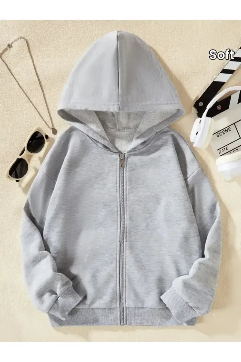 Детская толстовка с капюшоном на молнии | Органический хлопок, без принта, длинные рукава | Детская одежда для девочек/мальчиков