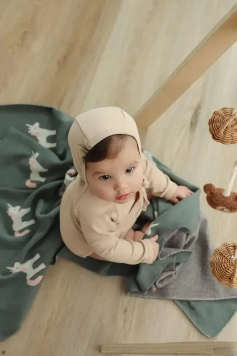 Bebek battaniyesi, triko battaniye, unicorn battaniye, bebek hediye, kız bebek, erkek bebek, yenidoğan, yeşil battaniye, örgü battaniye, battaniye