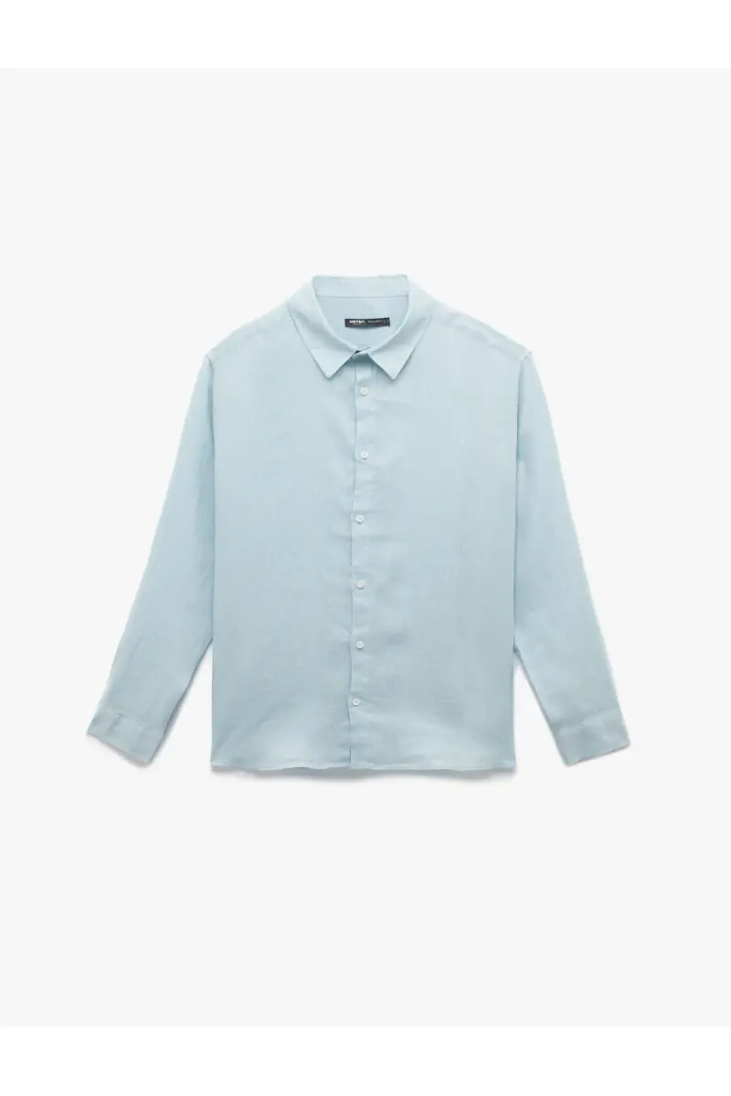 Klasik Yaka Regular Fit Uzun Kollu Keten Gömlek-Mavi