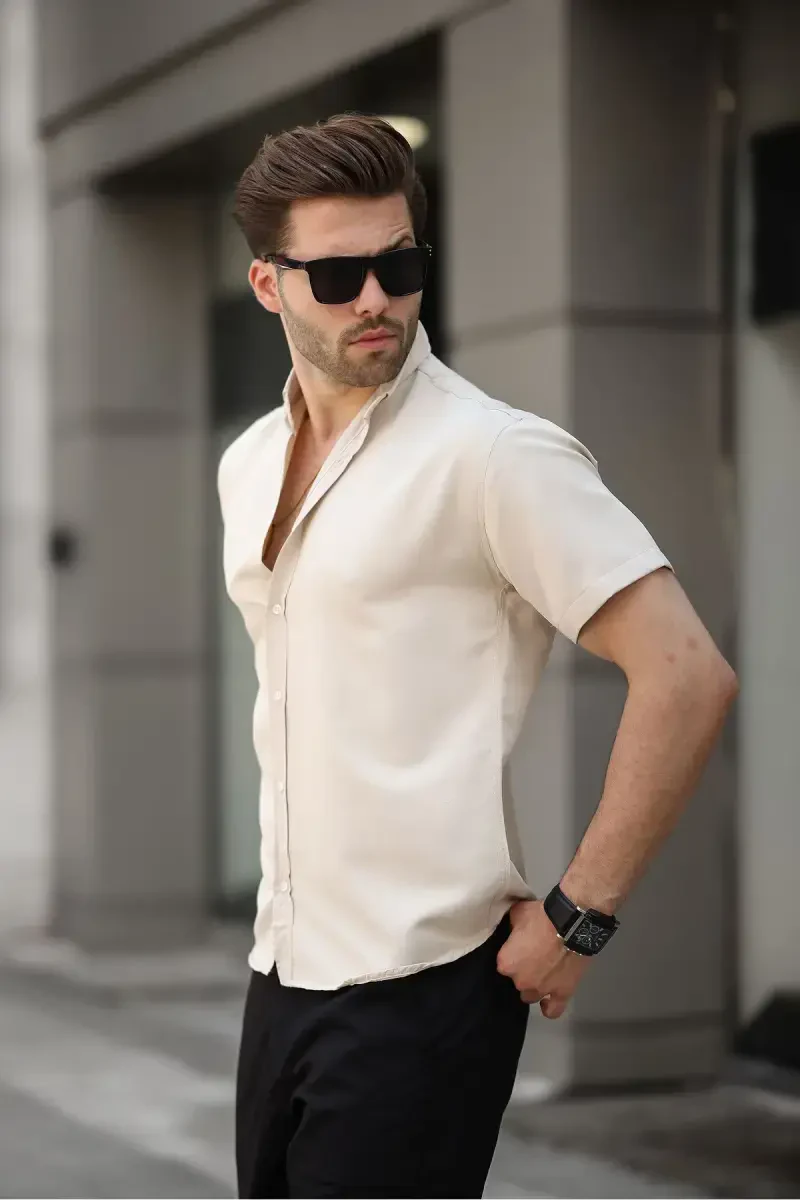 Классическая рубашка с коротким рукавом, которая дополняет ваш стиль как в деловой жизни, так и в личное время, сочетает в себе комфорт и стиль. Продемонстрируйте свою индивидуальность с помощью качественного материала и тщательно продуманных деталей.