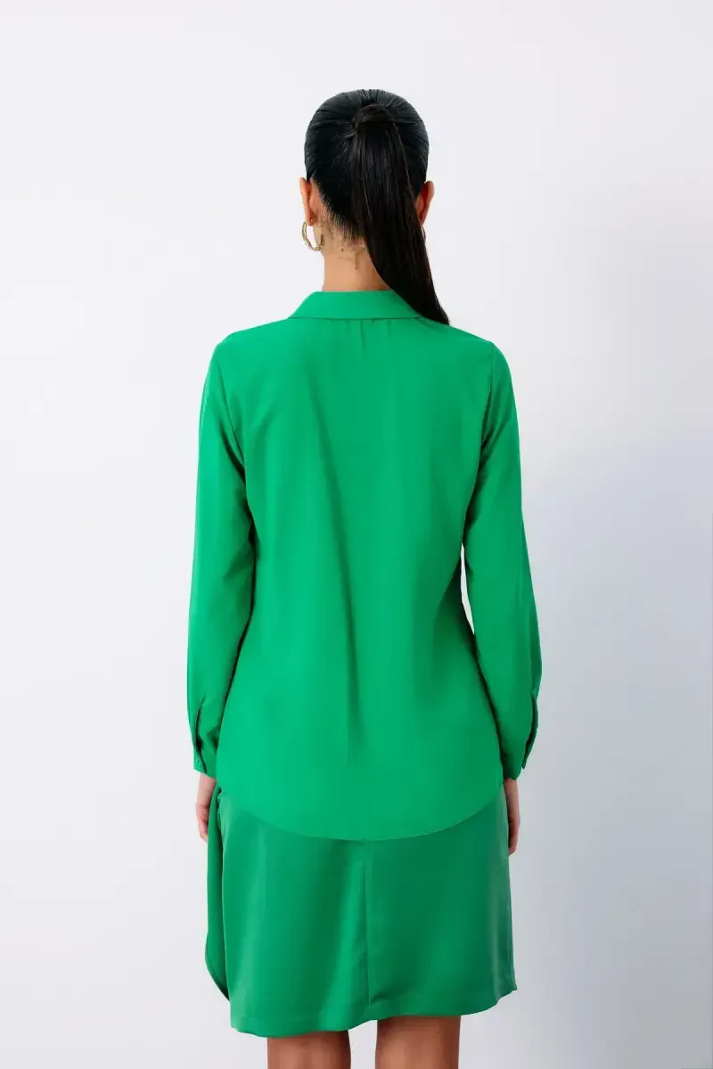 Uslub va qulaylikni birlashtirgan klassik oddiy yashil ko'ylagimiz sizning shkafingizning ajralmas qismi bo'ladi. Yuqori sifatli paxta matosidan tayyorlangan ushbu ko'ylak nafas olish va qulayligi bilan sizni kun bo'yi qulay his qiladi. Xoh biznes uchrashuvlarida bo'lsin, xoh kundalik hayotda bo'lsin, bu ko'ylak sizga har doim zamonaviy va uslubli ko'rinish beradi.