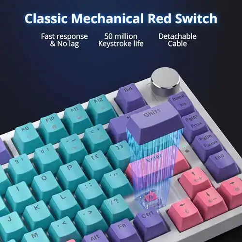 Клавиатура SbocKeeb 75 Percent - отличный выбор для геймеров, писателей и дизайнеров. Клавиатура, разработанная с креплением на прокладке и звукопоглощающими накладками, обеспечивает тихий и комфортный опыт печати. Ее компактный дизайн с 82 клавишами экономит больше места на вашем рабочем столе.