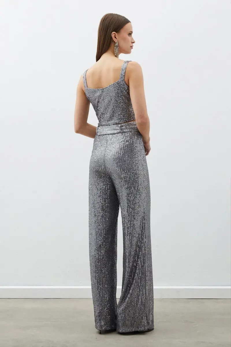 Брюки с пайетками и поясом - серебристые, идеальный выбор для женщин, ищущих блестящий и привлекательный стиль. Эти брюки, благодаря высокой талии, обеспечивают стильный вид и изящно подчеркивают линии тела. Блестящие пайетки обязательно привлекут внимание в любой обстановке и сделают вас звездой вечера. Пояс придает брюкам особый вид, делая вашу талию более тонкой и подчеркивая силуэт. Облегающий крой идеально сидит по фигуре и не сковывает движений. Эластичная ткань обеспечивает комфорт в течение всего дня, позволяя не жертвовать стилем. Эти брюки, которые можно надеть на особый случай, на шикарный ужин или на веселую вечеринку, станут незаменимой частью вашего гардероба. Серебристый цвет легко сочетается с любым верхом и позволяет создавать разные образы. Вы можете сочетать их с туфлями на каблуке, чтобы создать более шикарный образ, или с балетками или кроссовками, чтобы создать более удобный и повседневный стиль. Брюки с пайетками и поясом - серебристые - это современная и вневременная вещь. Благодаря качественному материалу и тщательному исполнению эти брюки прослужат вам долгие годы, предлагая стиль и комфорт в одном. Подчеркните свой стиль с помощью этих брюк и заявите о себе в любой обстановке. Ослепите своим блеском!