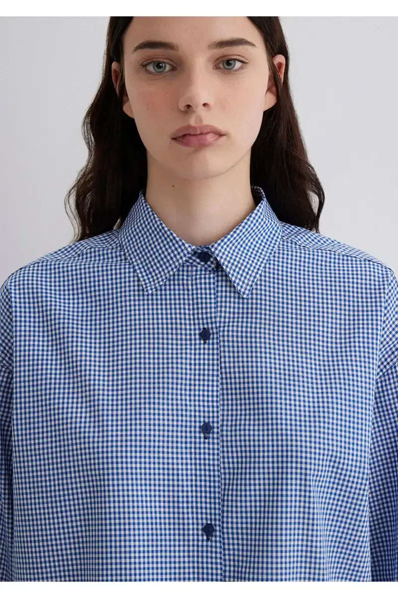Клетчатая темно-синяя рубашка оверсайз | Мужская рубашка широкого кроя