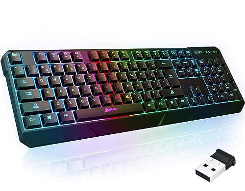 ✅ INSTANT CONNECTIVITY. Plug in the USB receiver and you can use the KLIM Chroma wireless keyboard instantly, from up to 30 feet away. There is no need to install any drivers! ✅ LONG-LASTING BATTERY. There's no need to buy batteries anymore! The gaming keyboard comes with premium-quality built in rechargeable batteries. You will spend lesser money while helping the environment. ✅ RGB BACKLIGHTING. Bring your desk to life! Choose static or breathing mode, or turn off the lights completely if you prefer. Note: colors are not customizable. ✅ IMPROVE YOUR TYPING SPEED. The membrane keys have a short travel distance, allowing for quick and easy typing. ✅ SPILL-RESISTANT & DURABLE. Engineered to handle everyday accidents. One of the only spill-resistant keyboards available at this price point. ✅ TRUSTED BY OVER 500,000 USERS. Great value with proven reliability. Backed by 24/7 customer support and a no-questions-asked return policy if you’re not satisfied.