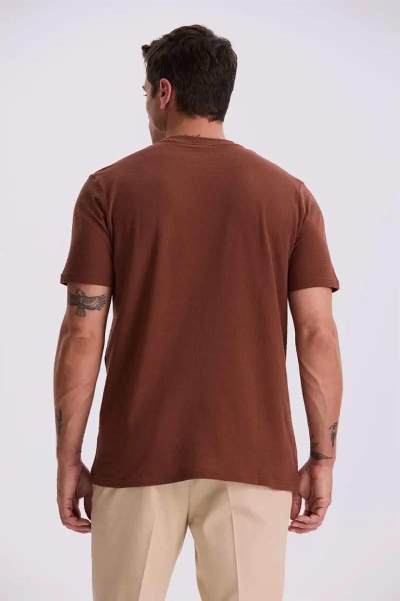 Комфорт и стиль в одном: футболка с круглым вырезом из 100% хлопка с узором кофейного оттенка