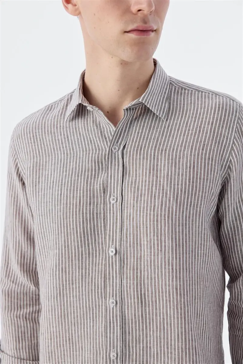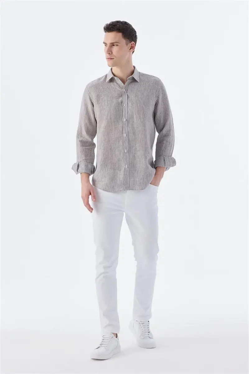 Наслаждайтесь комфортом и стилем даже в жаркие летние дни с кофейной льняной рубашкой в полоску Comfort Fit. Эта рубашка, изготовленная из 100% льняной ткани, обеспечивает воздухопроницаемость в течение всего дня и помогает сохранить кожу свежей, сводя к минимуму потоотделение. Крой Comfort Fit удобно сидит на теле, не стесняя его, и не ограничивает свободу движений. Кофейный цвет и элегантный полосатый узор рубашки легко адаптируются как к классическим, так и к современным стилям. Носите ее в повседневной жизни или на особые мероприятия, она позволит вам отразить свой стиль в любой обстановке. Эта рубашка не только сочетает в себе комфорт и стиль, но и выделяется своей долговечностью. Натуральная структура льняной ткани обеспечивает длительное использование. Благодаря качественным швам и тщательному исполнению она на долгие годы станет незаменимой частью вашего гардероба. Рубашка также очень проста в уходе. Ее можно стирать вручную или в стиральной машине и гладить, чтобы сохранить ее первоначальный вид. Кофейная льняная рубашка в полоску Comfort Fit доступна в различных размерах и подходит для любого типа фигуры. Вы можете легко найти наиболее подходящий для вас размер, посмотрев таблицу размеров. Размер M на манекене поможет вам лучше понять удобный крой изделия и то, как оно сидит. Эта рубашка - не просто одежда, это образ жизни. Идеальный выбор для мужчин, которые хотят оставаться прохладными и стильными в жаркие летние дни. Эта рубашка, которая обязательно должна быть в вашем гардеробе, позволит вам всегда быть стильным и комфортным. Теплота кофейного цвета и естественная текстура льняной ткани вместе подарят вам уникальные ощущения. Вы можете легко сочетать ее с джинсами или шортами в повседневных образах, а также с тканевыми брюками для более элегантного вида.