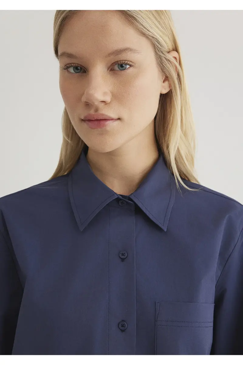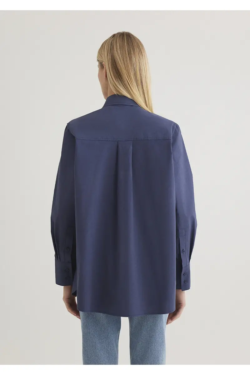 Lacivert Paxta Ko'ylak | Keng Kesim, Uzun Yengli