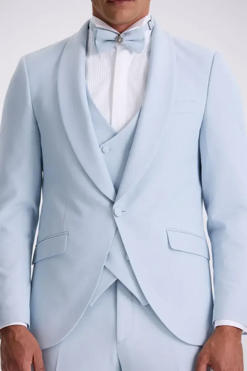ko'k smokin, kuyolilik kostyumi, slim fit, shal yاقة, yelekli smokin