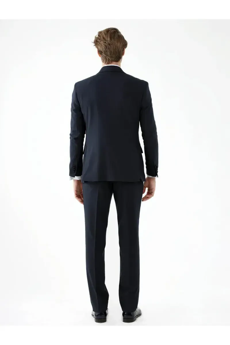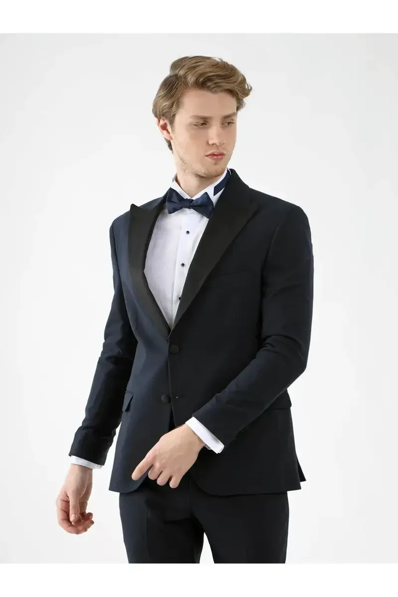 To'q ko'k Erkaklar uchun Slim Fit oddiy o'tkir yoqali Smokin Kostyumi - 92401
