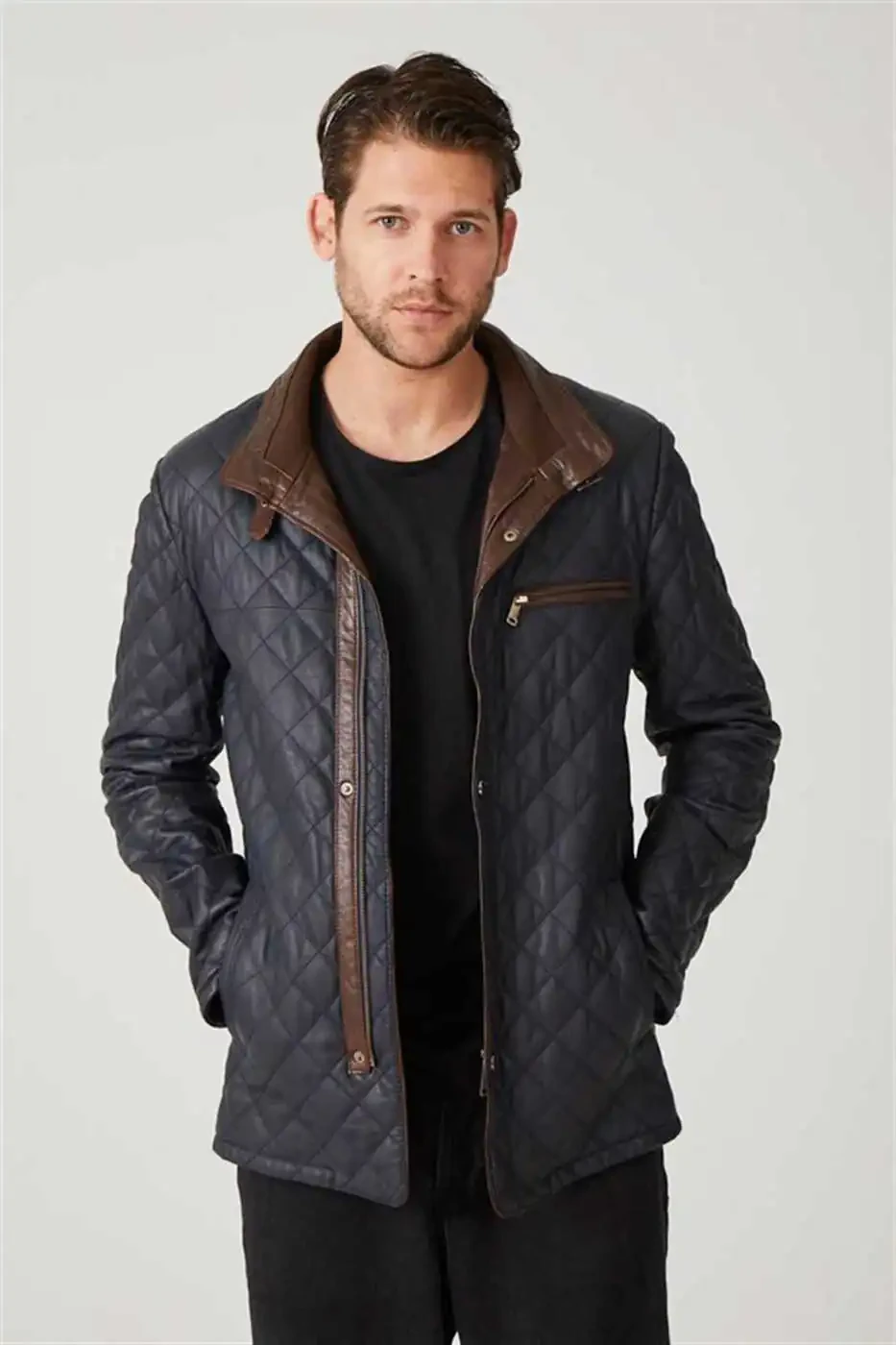 Ulric Erkaklar uchun Ko'k Rangli Kapitone Tikilgan, Belga O'tirgan, Astarli, Fermuar bilan Yopiladigan Haqiqiy Teri Palto, kundalik hayotda, ishda yoki maxsus tadbirlarda uslubli va oqlangan ko'rinish yaratmoqchi bo'lgan erkaklar uchun ajoyib tanlovdir.