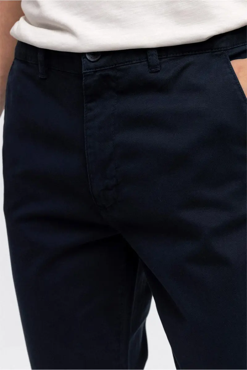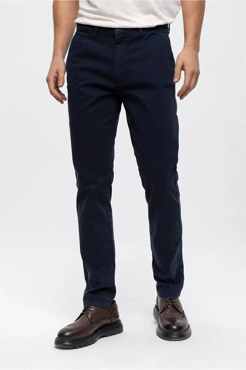 Ko'k rangli Slim Fit paxta Chinolar bilan siz zamonaviy va qulay ko'rinishga ega bo'lasiz va har qanday muhitda o'zingizni ishonchli his qilasiz.