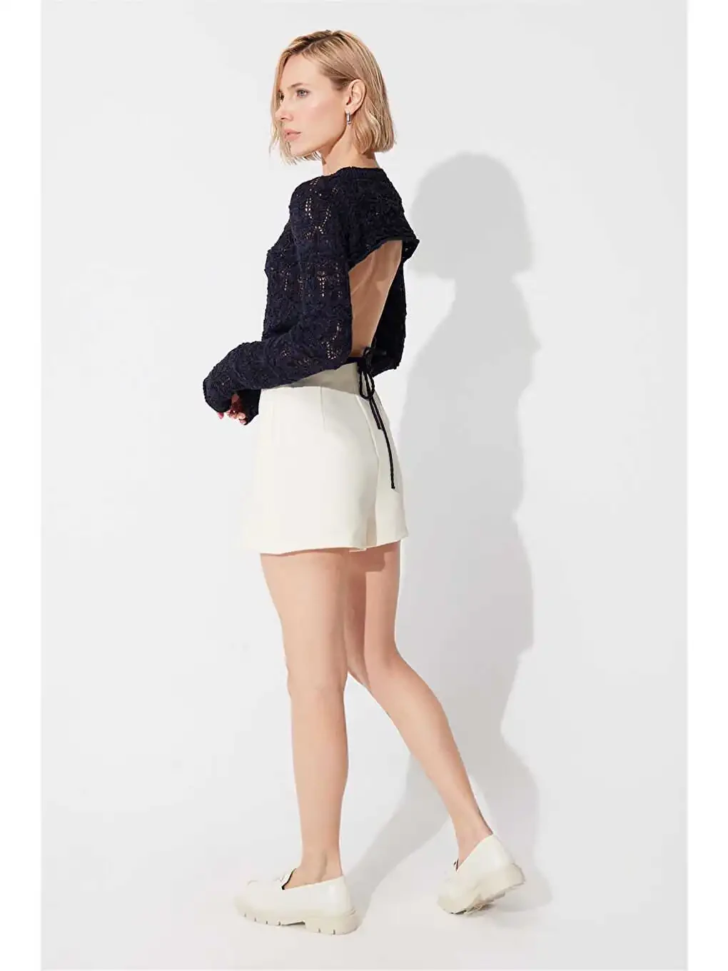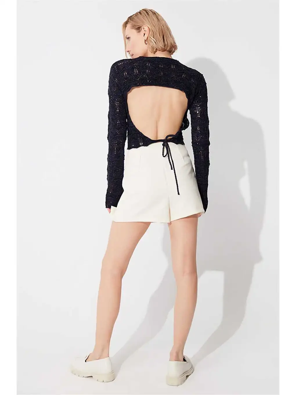 Stil va qulaylikni birlashtirgan ko‘k rangli orqa kesikli yassi yaka triko ko‘ylagi shkafingizning ajralmas qismi bo‘ladi. Yumshoq to‘qimasi va qulay kesimi kun bo‘yi qulaylik beradi, orqa kesigi esa ayollikni qo‘shadi.