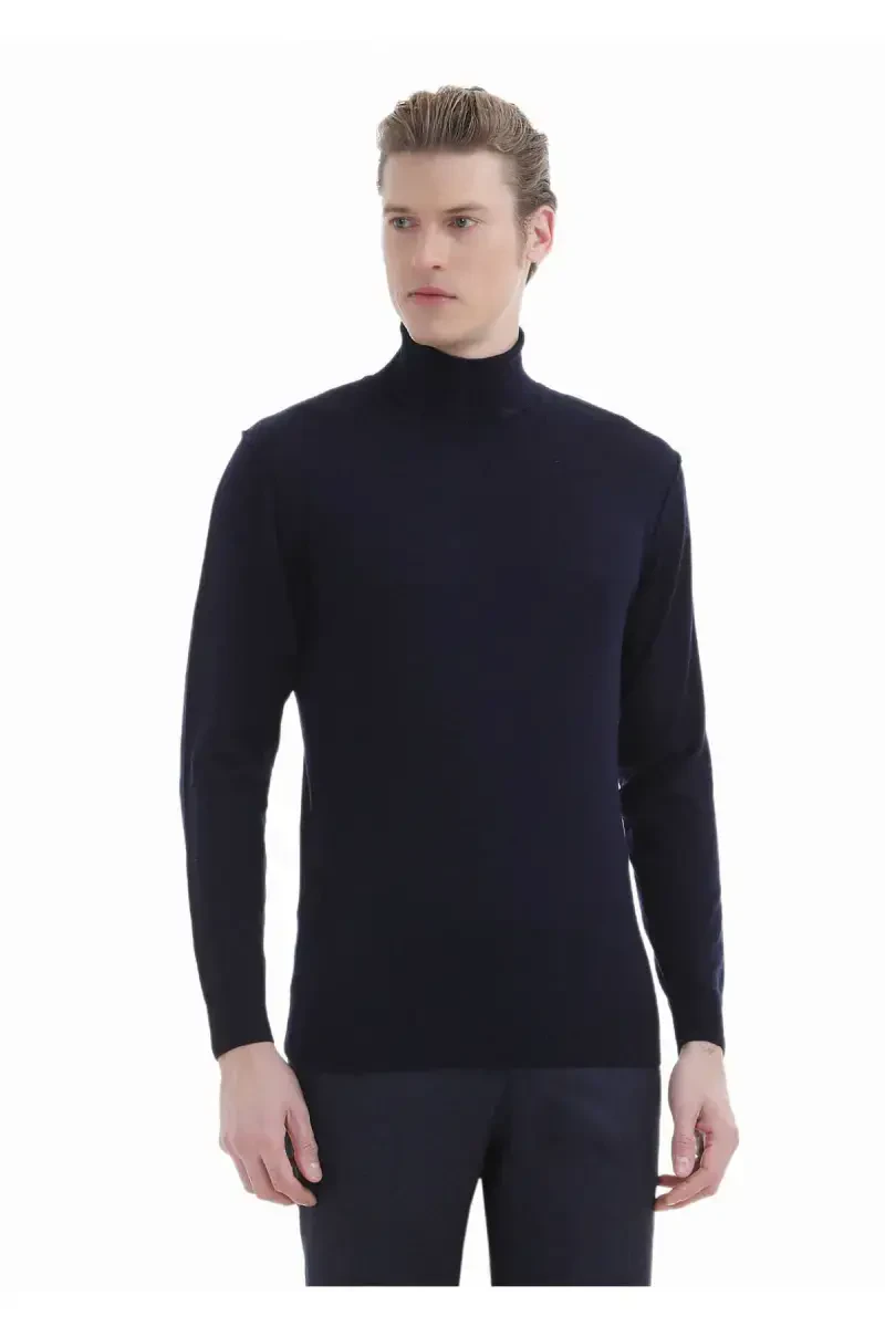 Lacivert Jun Balıqçı Yaka Triko | %100 Jun Sifatı
