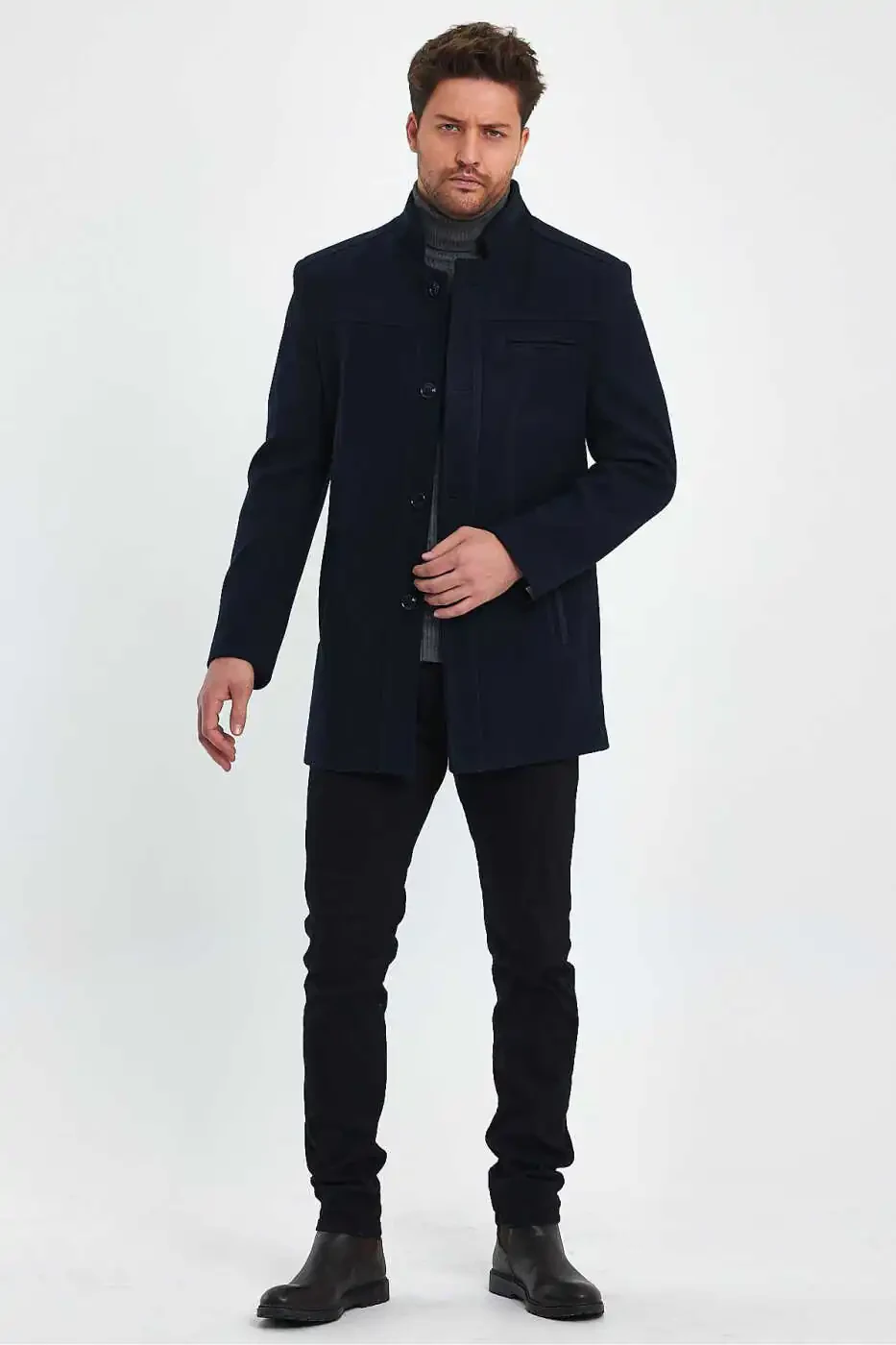 Erkaklar uchun ko'k rangli tor kalıplı kashmir palto, kundalik hayotda, ish hayotda yoki maxsus tadbirlarda bemalol kiyishingiz mumkin bo'lgan kiyimdir. O'zining nafisligi, sifati va qulayligi bilan qishki oylar davomida sizning ajralmas uslubingiz bo'ladi.