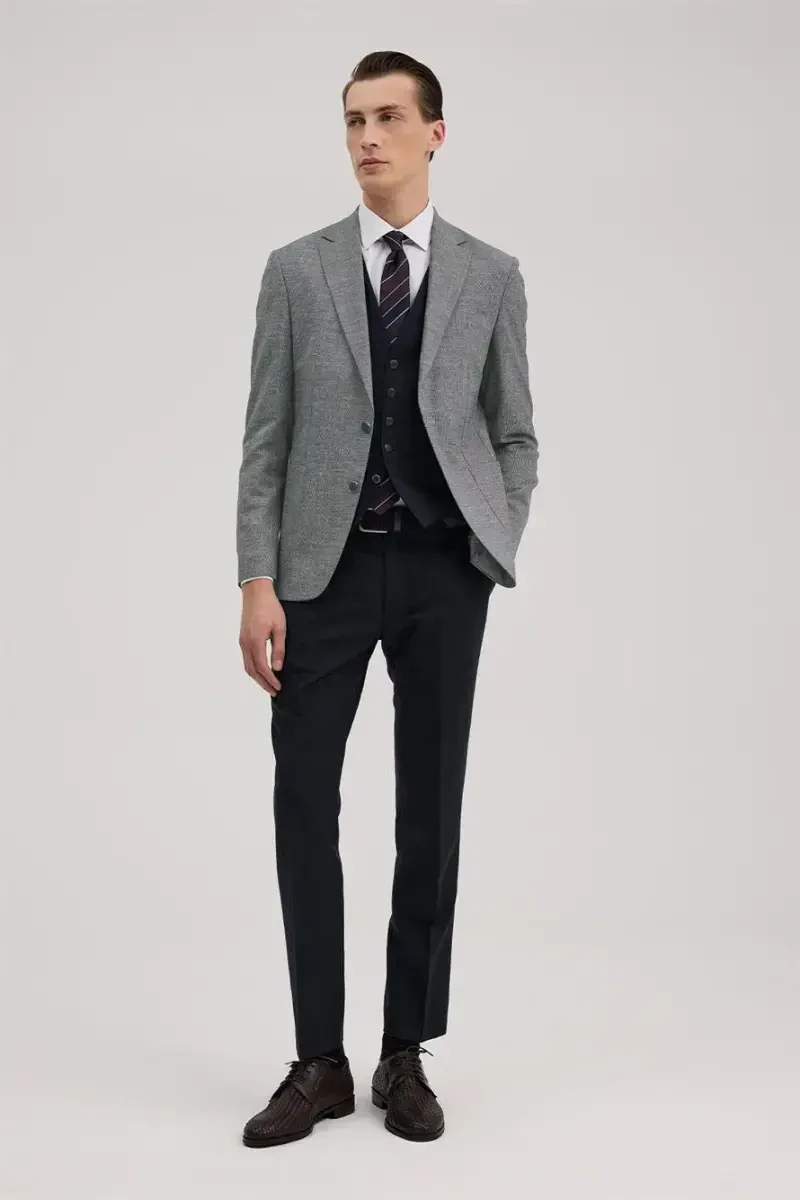To'q ko'k Slim Fit Mono Yoqali Jiletli Zig'ir Aralash kostyum bilan uslubingizni keyingi bosqichga olib chiqing. Ushbu kostyum o'zining zamonaviy kesimi va zamonaviy dizayni bilan maxsus tadbirlarda ham, biznes hayotida ham ajralib turishingizga imkon beradi. To'q ko'k rangning nafisligi, slim fit kesimning tanaga moslashuvchanligi va mono yoqa detali sizga nafis ko'rinish beradi. Jilet detali kostyumga o'ziga xos havo qo'shsa, zig'ir aralash mato tufayli kun bo'yi qulay foydalanishni ta'minlaydi. Ushbu kostyum ham uslub, ham qulaylikni qidirayotgan erkaklar uchun ideal tanlovdir.Mato tarkibidagi polyester, viskoza, zig'ir va elastan aralashmasi kostyumga chidamlilik, nafas olish va elastiklik beradi. Polyester ajinlar qarshiligini ta'minlasa, zig'ir tabiiy tuzilishi bilan teringizning nafas olishiga imkon beradi. Viskoza matoga yumshoqlik va yoqimli teginish qo'shsa, elastan harakat erkinligingizni cheklamay sizga to'liq mos kelishini ta'minlaydi. Shu tarzda, siz kun bo'yi zamonaviy va qulay his qilasiz.Kostyumning slim fit kesimi tana chiziqlaringizni ochib beradi, shu bilan birga zamonaviy va dinamik ko'rinishni taqdim etadi. Mono yoqa detali klassik kostyumlardan farqlanish imkonini beradi va uslubingizga o'ziga xoslik qo'shadi. Jilet kostyumga chuqurlik va hajm beradi, shu bilan birga turli xil kombinatsiyalarni yaratishga imkon beradi. Misol uchun, jiletni ko'ylaksiz kiyib, ko'proq tasodifiy uslubga erishishingiz mumkin.To'q ko'k Slim Fit Mono Yoqali Jiletli Zig'ir Aralash kostyum, yuqori sifatli mahorati va ehtiyotkorlik bilan ishlangan detallari bilan uzoq yillar davomida garderobingizning ajralmas qismiga aylanadi. Xoh maxsus tadbirda bo'ling, xoh muhim biznes uchrashuvida bo'ling, ushbu kostyum bilan siz har doim zamonaviy va o'ziga ishonchli ko'rinasiz. Kombinatsiyalaringizni turli xil ko'ylaklar, galstuklar va poyabzallar bilan to'ldirib, o'z uslubingizni aks ettirishingiz mumkin. Ushbu kostyum shunchaki kiyim emas, balki uslub ifodasidir. O'zingizni maxsus va muvaffaqiyatli his qilish uchun ajoyib tanlovdir.