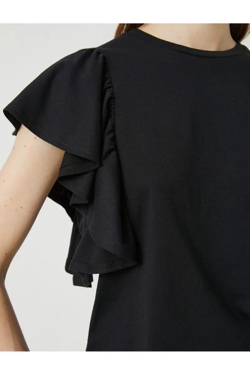 Volanli yengli futbolka, velosiped yoqali - Qora, garderobingizning ajralmas qismiga aylanishga nomzod! Ushbu zamonaviy va zamonaviy futbolka kundalik foydalanishda ham, maxsus lahzalarda ham sizga hamroh bo'ladi. Velosiped yoqasi va volanli yenglari bilan e'tiborni tortadigan ushbu dizayn dinamik uslubingizga ajoyib teginish qo'shadi. Qo'ltiq ostidagi o'yiq detal futbolkaga alohida havo beradi, shu bilan birga qulay kiyishni taklif qiladi. Yolg'iz o'zi kalit ko'rinishning bir qismi bo'lishga tayyor bo'ling!Ushbu futbolka sizga ko'p sotuvchining afzalligi bilan taqdim etiladi. Trendyol kafolati bilan sizning eshigingizga keladigan ushbu mahsulot turli sotuvchilarning narxlarini, ballarini, yetkazib berish vaqtlarini va yuk afzalliklarini taqqoslash orqali eng mos variantni topishga imkon beradi. Stokda kam miqdorda mavjud bo'lgan ushbu maxsus dizayn uchun shoshiling!Mahsulotimiz 15 kun ichida bepul qaytarish imkoniyatini taklif etadi. Agar mahsulotdan mamnun bo'lmasangiz, uni osongina qaytarishingiz mumkin. Qaytarish shartlari haqida batafsil ma'lumot olish uchun Trendyolga tashrif buyurishingiz mumkin.Modelning o'lchamlari quyidagicha: Bo'yi: 177 sm, soni: 89 sm, ustki: 61 sm, beli: S o'lcham, ko'kragi: 80 sm va jinsi: 27/32 o'lcham. Ushbu ma'lumot sizga to'g'ri o'lchamni tanlashda yordam beradi.Volanli yengli futbolka, velosiped yoqali - Qora bilan uslubingizni to'ldiring va har qanday muhitda farq yarating!