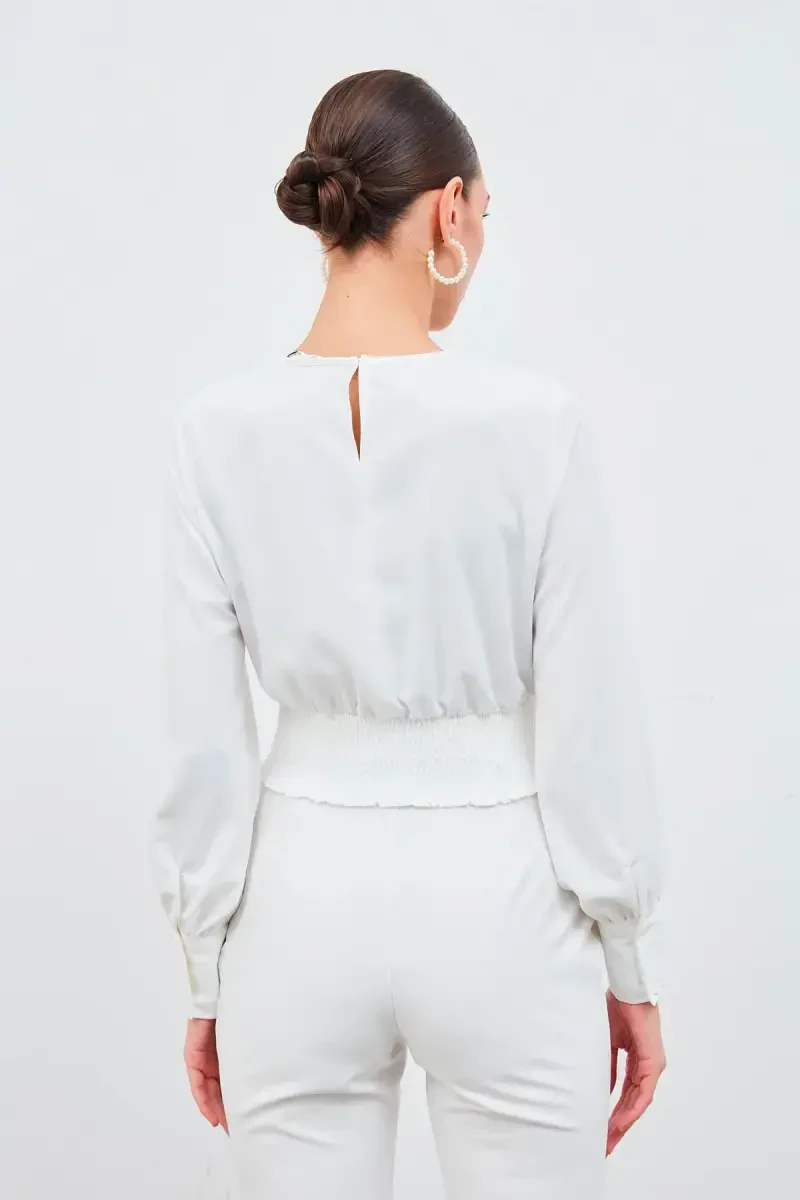 Marjonli Detal Crop Top - Ekru - Zamonaviy va Qulay Uslub