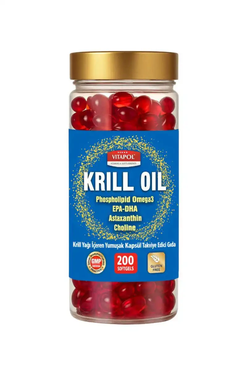 Комплекс криля с астаксантином, холином, фосфатидилсерином, омега-3 EPA и DHA 200 мягких капсул - для мозга, иммунитета и общего здоровья
