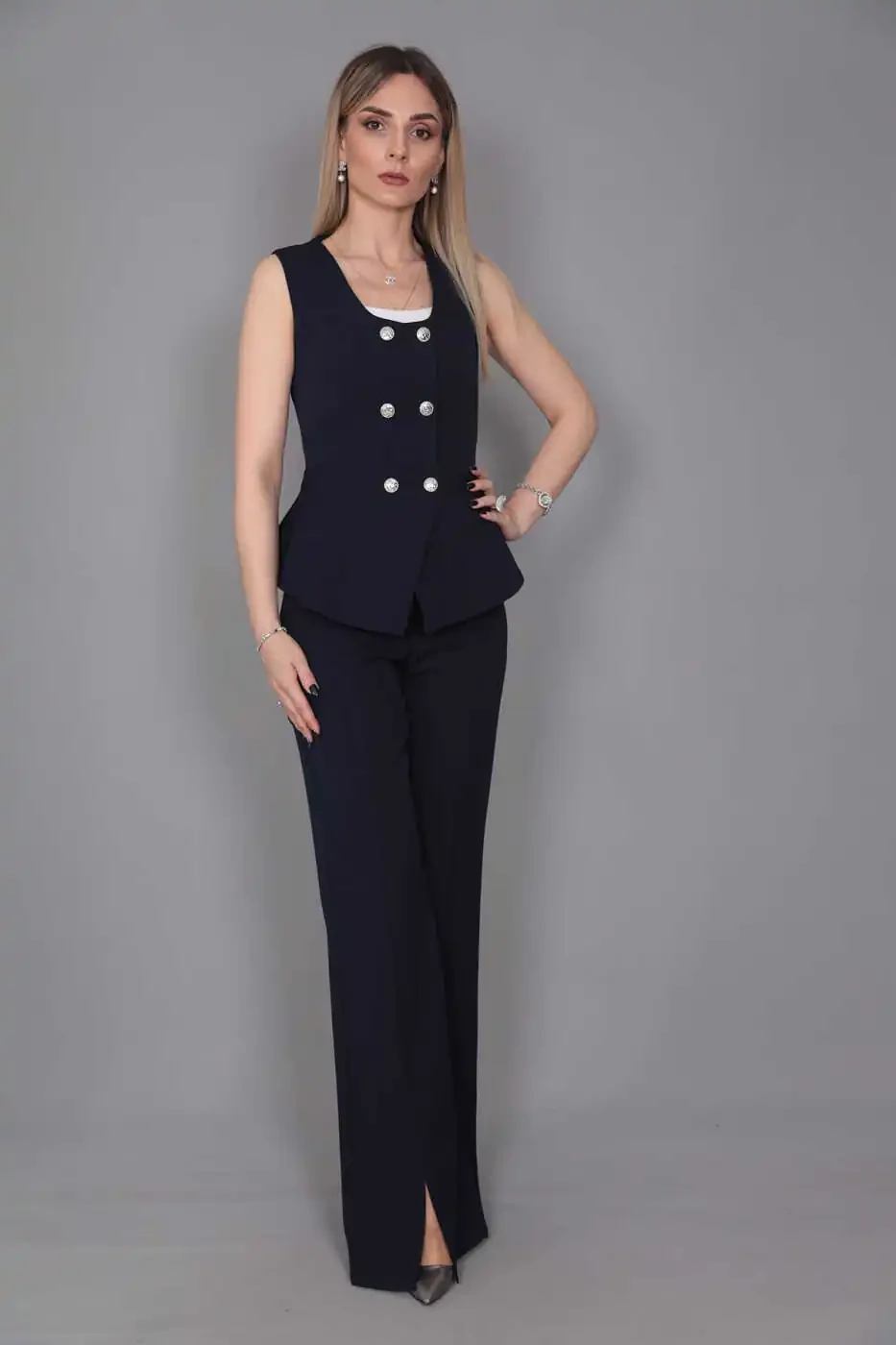 Комплект жилет Aller & брюки с испанскими разрезами - темно-синий