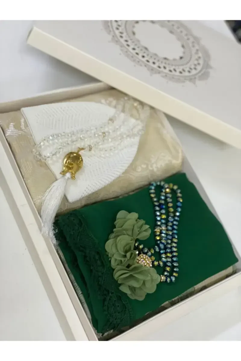 Приданое Намазлык Комплект - Зеленый изготовлен из тщательно отобранных материалов высшего качества. Благодаря этому он сохраняет свою яркость и элегантность в течение многих лет. Намазлык, входящий в комплект, благодаря своей мягкой текстуре обеспечивает удобную основу во время намаза и делает ваше поклонение более умиротворенным. Традиционные мотивы на намазлыке вдохновлены лучшими образцами турецкого рукоделия, и каждый из них тщательно проработан. Умиротворяющий тон зеленого цвета придает спокойствие вашему поклонению и гармонирует с общей эстетикой комплекта. Другие предметы в комплекте были тщательно отобраны, чтобы дополнить дизайн намазлыка. Четки изготовлены из качественного материала, просты в использовании и удобны. Детали на четках добавляют комплекту элегантный штрих. Ароматическое саше, распространяя приятный аромат, делает ваше место поклонения еще более особенным. Все эти предметы представлены в стильной коробке. Эта коробка позволяет не только безопасно хранить комплект, но и обеспечивает стильную презентацию при дарении его вашим близким. Приданое Намазлык Комплект - Зеленый - идеальный вариант не только для молодоженов, но и для тех, кто хочет сделать значимый подарок своим близким. Вы можете выбрать этот специальный комплект, чтобы порадовать своих близких и преподнести им духовную ценность в особые дни, такие как День матери, день рождения, праздник. Этот комплект - не просто предмет, а выражение любви и уважения. Этот комплект, который принесет в ваш дом изобилие и мир, является наследием, которое будет передаваться из поколения в поколение. Украсьте свои незабываемые моменты этим специальным комплектом и подарите своим близким незабываемый подарок. Приданое Намазлык Комплект - Зеленый, каждая деталь которого тщательно продумана, заслуживает того, чтобы занять самое ценное место в вашем доме.