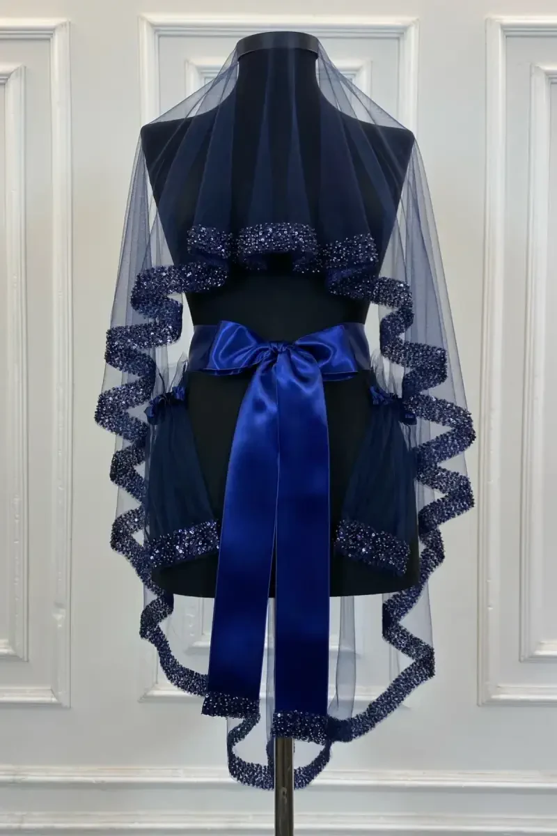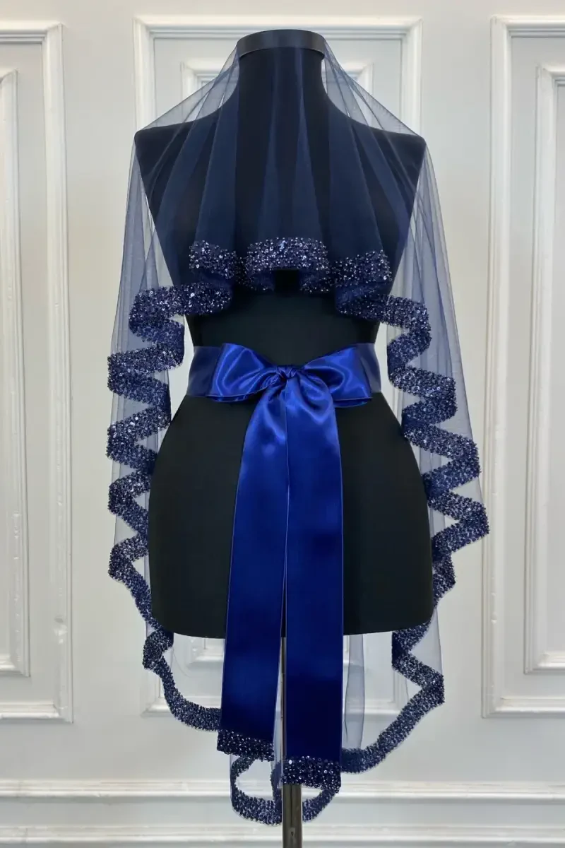 Комплект темно-синей свадебной фаты | Аксессуар для хны, свадьбы | Zeymerade