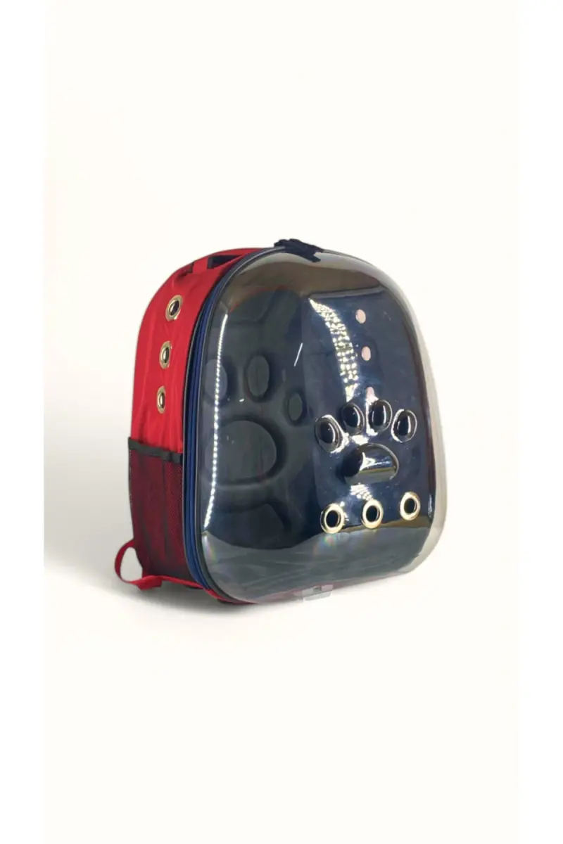 Köpek - Kedi Taşıma Çantası Şeffaf Astronot-Kırmızı