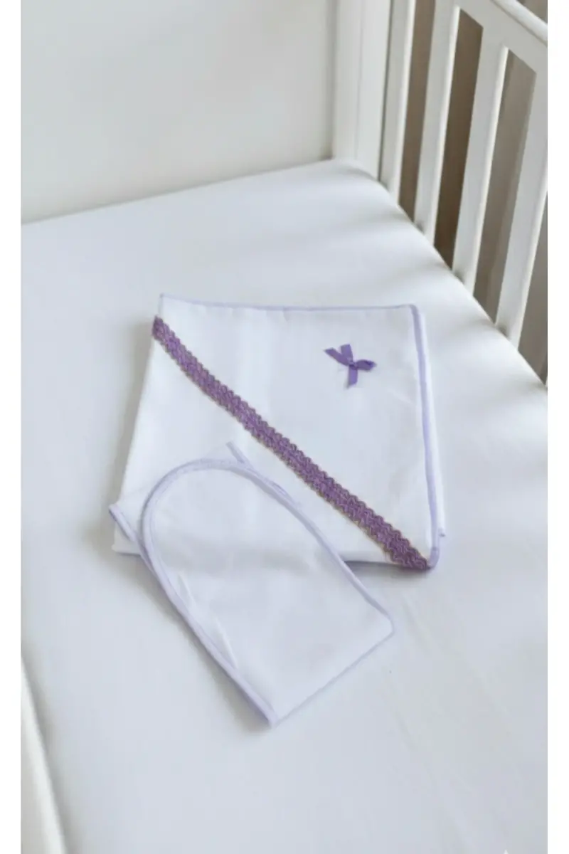 Bebek Kundak %100 Pamuk Kemerli 70x70 cm - Mor | Yenidoğan Kundak