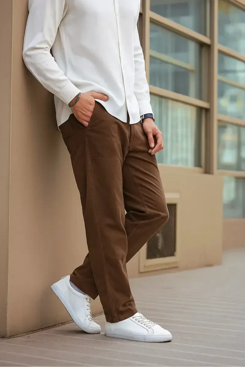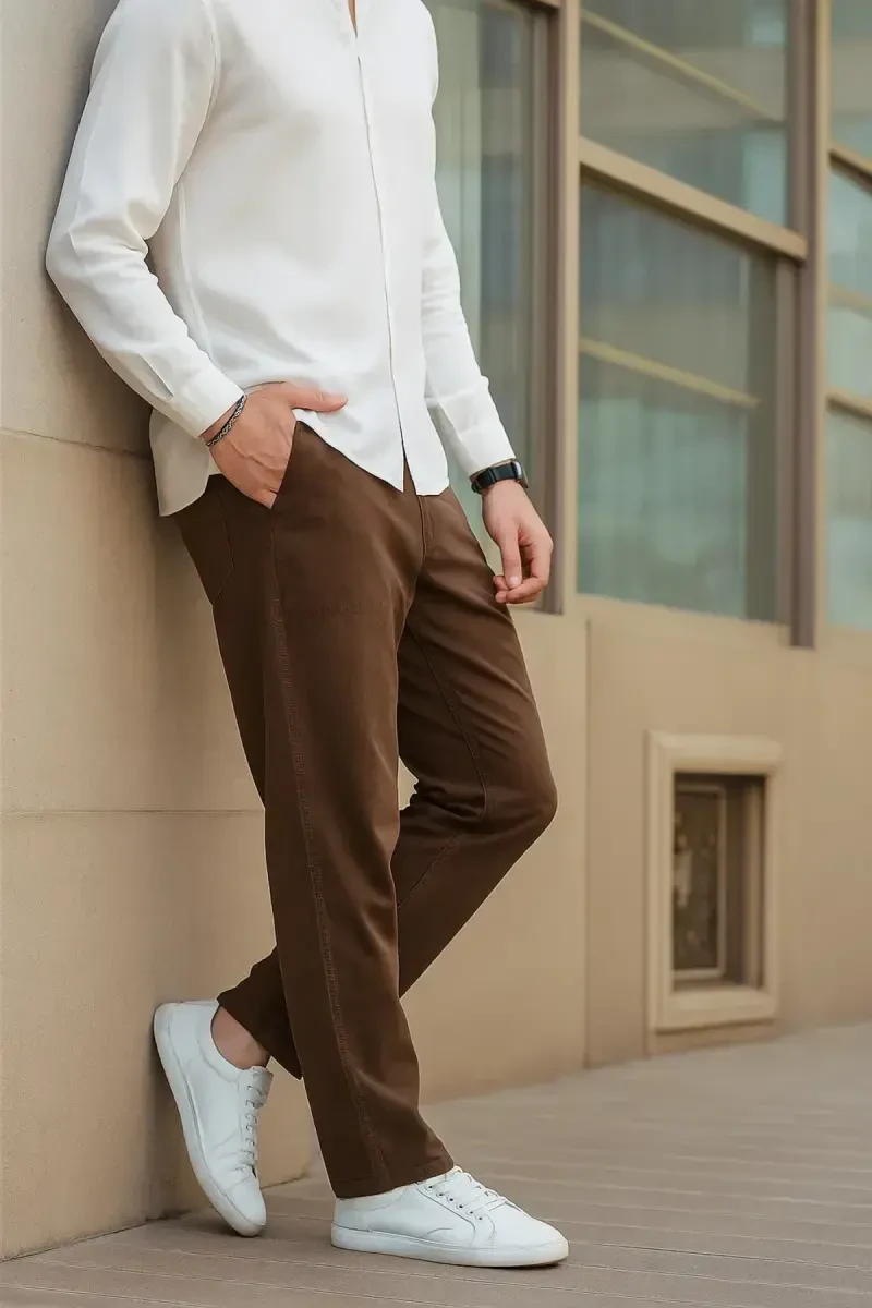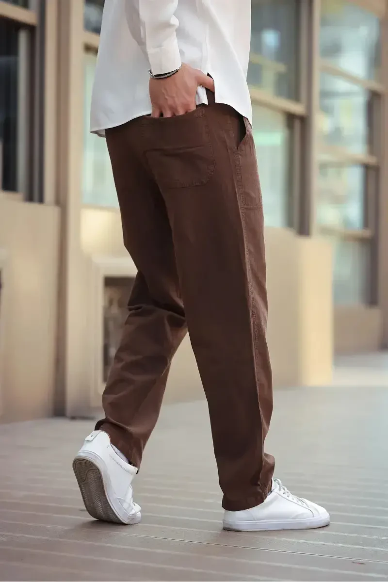 Мужские летние брюки Relaxed из смесовой ткани лен кофейного цвета - идеальный выбор для мужчин, которые не хотят жертвовать стилем и ценят комфорт в жаркие летние дни. Эти брюки, являясь частью коллекции Basic, предлагают идеальный баланс для повседневного использования. Благодаря содержанию органического хлопка они поддерживают экологичный подход, а смесовый материал из льна обеспечивает легкую и дышащую структуру. Это сводит к минимуму проблему потоотделения в течение дня и обеспечивает комфортное использование. Силуэт джоггеров придает брюкам современный и непринужденный вид, а обычный крой обеспечивает посадку по фигуре, но не ограничивает свободу движений. Боковые карманы - практичное решение для переноски личных вещей, таких как телефон, кошелек или ключи. Эластичная талия обеспечивает комфорт в течение всего дня, а шнурок на поясе позволяет регулировать размер талии. Эта функция гарантирует, что брюки идеально сидят на любой фигуре. Однотонный дизайн позволяет легко сочетать их с любой верхней одеждой. С футболками, рубашками или поло можно создавать разные стили. Кофейный цвет придает естественный и теплый вид и легко сочетается с разными цветами. Их можно дополнить кроссовками для спортивного образа или лоферами для более элегантного образа. Эти брюки не только сочетают в себе комфорт и стиль, но и поддерживают концепцию устойчивой моды. Использование органического хлопка позволяет сделать экологически чистый выбор. Эти брюки, которые станут незаменимой частью вашего летнего гардероба, будут сопровождать вас как в повседневных делах, так и в особых случаях. Этот продукт от Combine Michail отличается долговечностью и прочностью. С этими брюками вы сможете отразить свой стиль, не жертвуя при этом комфортом. Эти брюки, сочетающие в себе стиль, комфорт и экологичность, - незаменимая вещь в гардеробе современного мужчины.