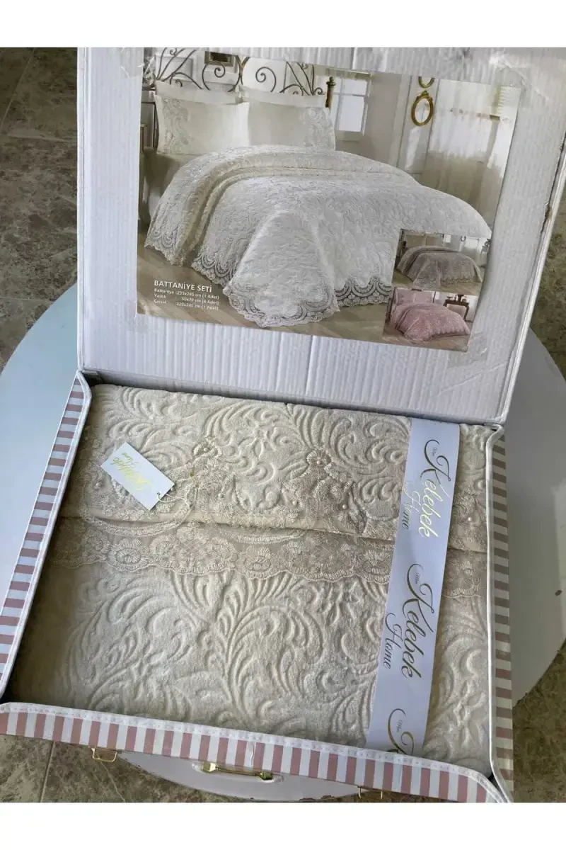 Привнесите элегантность и комфорт в свою спальню с коричневым двуспальным одеялом с французским кружевом. Этот специальный набор одеял для приданого разработан для тех, кто ценит стиль и комфорт. Теплота норкового цвета и благородный вид французского кружева придадут вашей спальне изысканный вид. Высококачественные материалы, используемые в наборе, обеспечивают длительное использование и превосходный комфорт. Этот специальный набор предлагается вам с гарантией Çeyizci Caddesi и выпущен в ограниченном количестве. Не упустите эту уникальную возможность, предлагаемую по акционной цене. Цена продажи нашего продукта определяется продавцом и может быть предложена для продажи несколькими продавцами. Продавцы ранжируются с учетом их цен, баллов, статуса доставки, акций, вариантов доставки и информации о запасах. Таким образом, вы можете легко найти наиболее подходящий вариант для себя. Trendyol разрешает заказывать не более 10 единиц этого продукта и оставляет за собой право отменить заказы, превышающие 10 единиц. Это ограничение не распространяется на корпоративные заказы, и для корпоративных заказов могут быть установлены другие ограничения. Если вы не удовлетворены продуктом, вы можете воспользоваться возможностью бесплатного возврата в течение 15 дней. Для получения подробной информации ознакомьтесь с нашими условиями возврата. Коричневое двуспальное одеяло с французским кружевом полностью изменит атмосферу вашей спальни и подарит вам спокойный сон. Этот специальный набор - отличный выбор как для повседневного использования, так и для особых случаев. Этот набор одеял, изготовленный из высококачественных материалов и с тщательной отделкой, сохранит свою элегантность, как в первый день, на долгие годы. Хлопковая простыня и наволочки, входящие в набор, позволяют вашей коже дышать и обеспечивают комфортную среду для сна. Атласные наволочки помогают защитить здоровье ваших волос и кожи. Вышивка бисером и кружевные детали придают набору неповторимую элегантность, а норковый цвет легко сочетается с любым декором. Выберите коричневый двуспальный комплект одеял с французским кружевом, чтобы добавить роскоши в свою спальню и подарить незабываемый подарок своим близким. Этот набор - не просто одеяло, он предлагает стиль жизни.