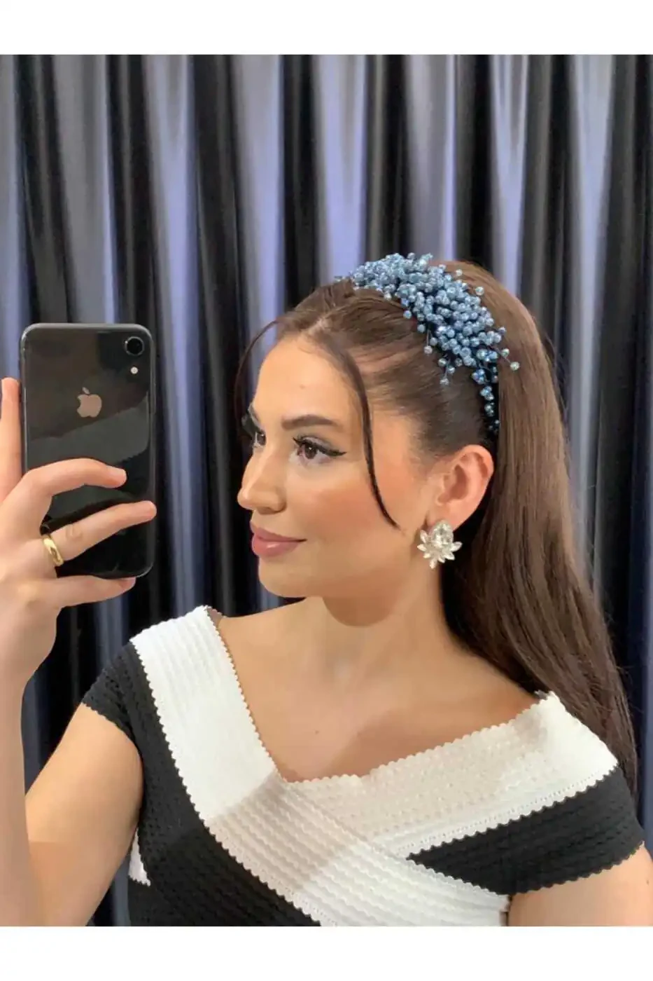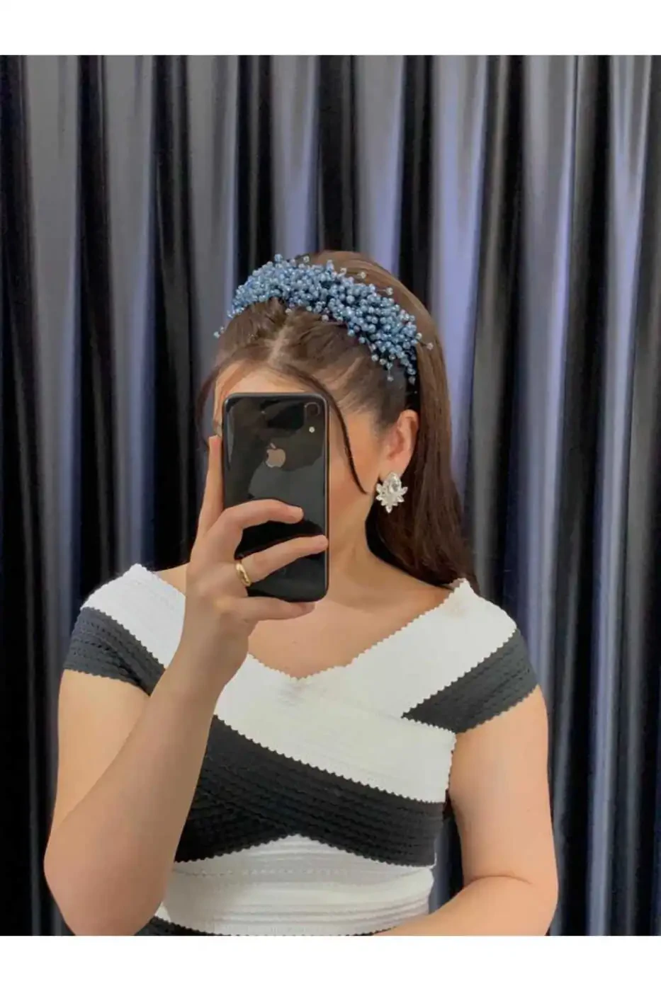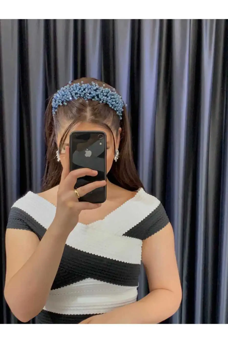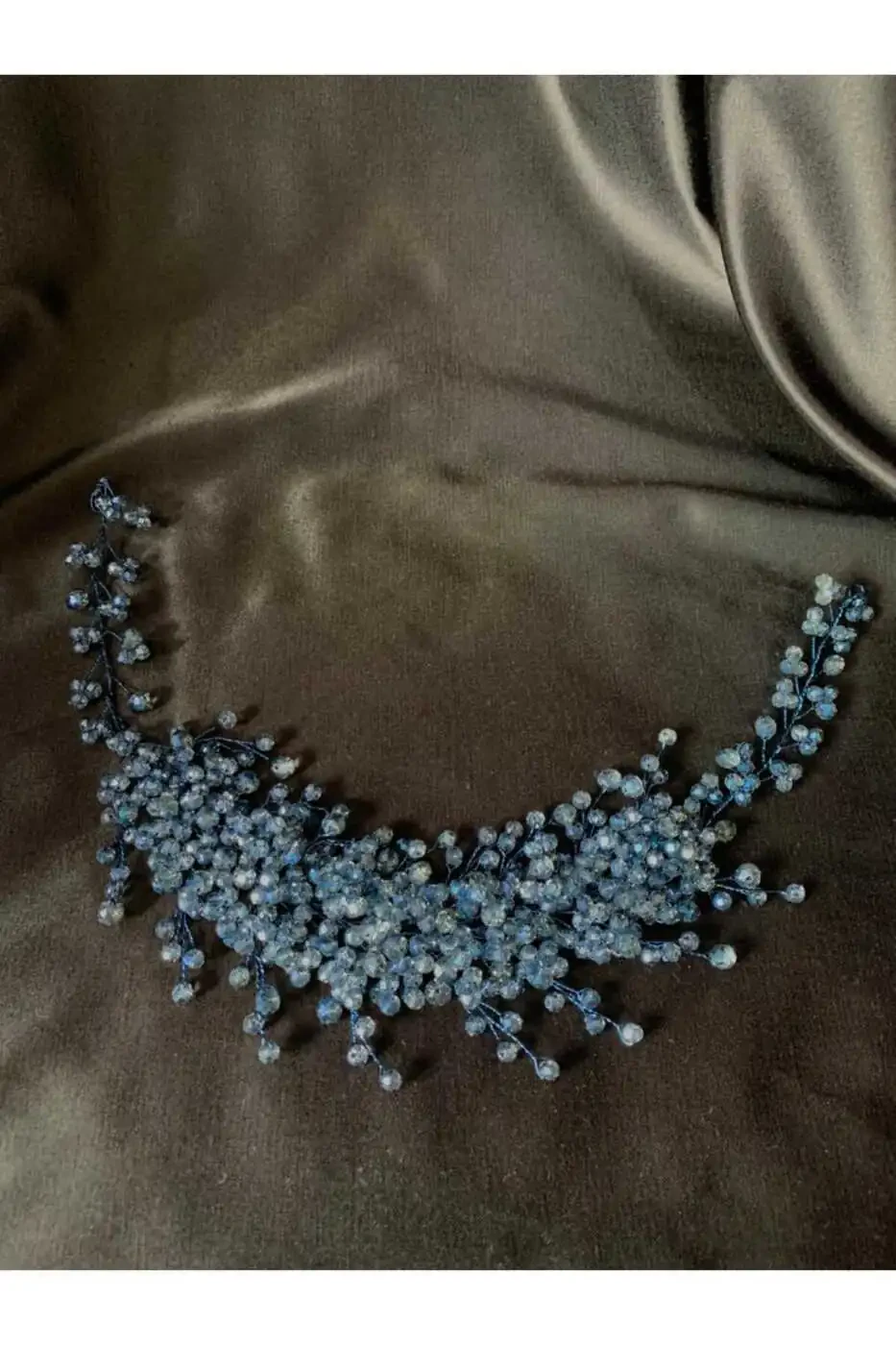 Наша тиара, с мягким и изящным дизайном, идеально ложится на волосы, создавая шикарный и утонченный образ. Сверкающие голубые кристаллические бусины создают луч света, который мерцает на ваших волосах, делая вас звездой вечера. Со своим элегантным и современным дизайном эта тиара удовлетворяет вкусы как традиционных, так и современных невест, предлагая непревзойденную элегантность для ваших свадеб, хны, помолвок или особых случаев.