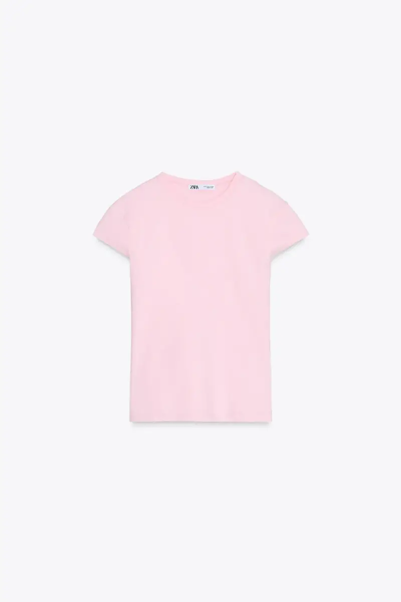 Изготовлено из хлопчатобумажной ткани. Короткий рукав. Облегающий крой. Круглый вырез.