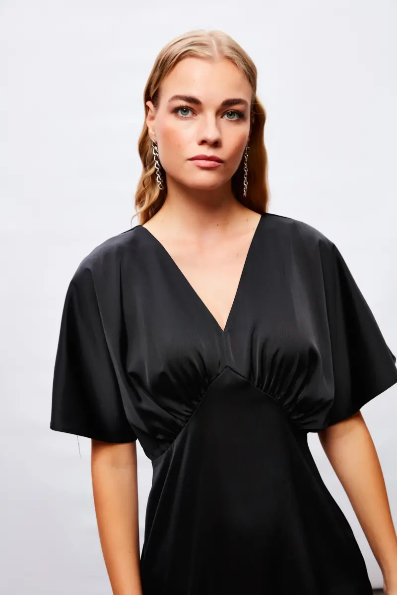 Ko'rsha ko'ylaklar qulaylik va uslubni birlashtiradi, har qanday tana turiga mos keladigan kesimi esa sizni odatdagidan ham go'zal ko'rinishga olib keladi. Mini uzunligi oyoqlaringizni ta'kidlab, sizga ayollik baxsh etadi. Qora rangi har doim uslubli va nafis tanlov bo'ladi.