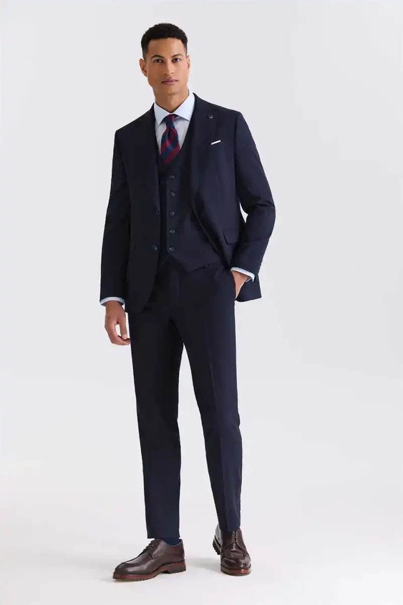 Lacivert Slim Fit Sivri Yaka Yelekli Bamboo Takım Elbise ile şıklığı ve konforu bir arada yaşayın. Günümüz modern erkeğinin ihtiyaçları göz önünde bulundurularak tasarlanan bu takım elbise, özel davetlerden iş toplantılarına kadar her ortamda kusursuz bir görünüm sunar. Takımın slim fit kesimi, vücudunuzu saran hatları ile fit bir siluet oluştururken, sivri yaka tasarımı ise klasik bir şıklık katmaktadır. Yelek detayı, takım elbiseye sofistike bir hava katarken, farklı kombinler yapma imkanı da sunar. Yeleği takım elbise ile birlikte kullanabileceğiniz gibi, farklı gömlek ve pantolonlarla da kombinleyerek tarzınızı yansıtabilirsiniz.Kumaş içeriğindeki bambu lifleri sayesinde takım elbise, nefes alabilen ve terletmeyen bir yapıya sahiptir. Bu özellik, özellikle uzun ve yoğun günlerde size gün boyu konfor sağlar. Bambu liflerinin doğal yumuşaklığı, cildinizde hoş bir his bırakır ve giyim konforunu artırır. Polyester içeriği, kumaşın dayanıklılığını artırarak uzun ömürlü kullanım imkanı sunar. Elastan ise kumaşa esneklik kazandırır, hareket özgürlüğünüzü kısıtlamaz ve takım elbisenin üzerinizde daha iyi oturmasını sağlar. Lacivert rengin asil ve zamansız duruşu, takım elbiseyi her mevsim ve her ortamda giyilebilir kılar.Lacivert Slim Fit Sivri Yaka Yelekli Bamboo Takım Elbise, detaylara önem veren erkekler için ideal bir seçimdir. Dikiş kalitesi, kullanılan malzemelerin özenle seçilmesi ve modern tasarım anlayışı ile bu takım elbise, gardırobunuzun vazgeçilmez parçalarından biri olacaktır. Şıklığınızı ve tarzınızı bir üst seviyeye taşımak için bu özel tasarım takım elbiseyi tercih edin. Unutmayın, iyi bir takım elbise sadece bir kıyafet değil, aynı zamanda bir duruştur. Bu duruşu Lacivert Slim Fit Sivri Yaka Yelekli Bamboo Takım Elbise ile yakalayın. Hem rahatlığınızdan ödün vermeden şık görünmek hem de tarzınızı en iyi şekilde yansıtmak için bu takım elbise mükemmel bir seçenektir. İş hayatınızda, özel davetlerde veya günlük kullanımda her zaman şık ve özgüvenli hissetmenizi sağlar. Bu takım elbise ile her ortamda dikkatleri üzerinize çekebilir ve tarzınızla fark yaratabilirsiniz.
