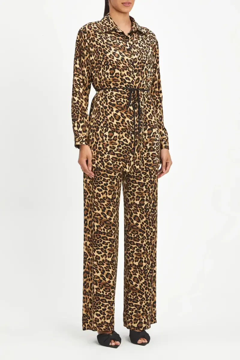 Этот элегантный комплект отличается потрясающим леопардовым принтом и эффектным аксессуаром на плечах, что делает его идеальным для любого особого случая или повседневной носки. Дизайн с завязками на талии затягивается, создавая безупречный силуэт.