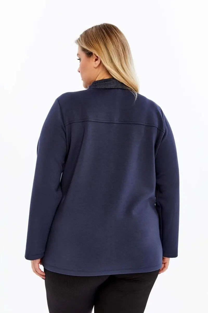 Kot Garnili Büyük Beden Ceket Lacivert=>Denim Trim Plus Size Jacket Navy Blue