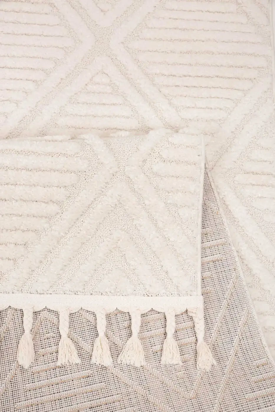 Его кудрявая текстура обеспечивает мягкое прикосновение под ногами, помогая вам расслабиться после долгого дня. Кисточки по краям добавляют ковру изысканности, создавая современную эстетику.