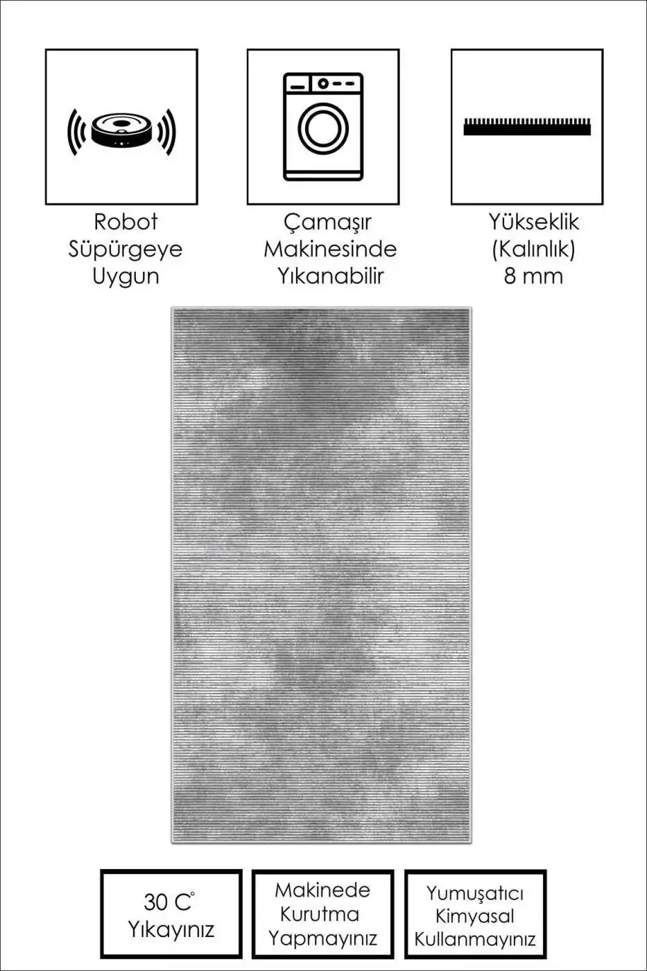 Защита от грязи: Его грязеотталкивающие свойства позволяют легко очищать пятна от повседневной жизни. Эта особенность, которая избавляет вас от хлопот, помогает вам сохранять коврик в идеальном состоянии в течение длительного времени.