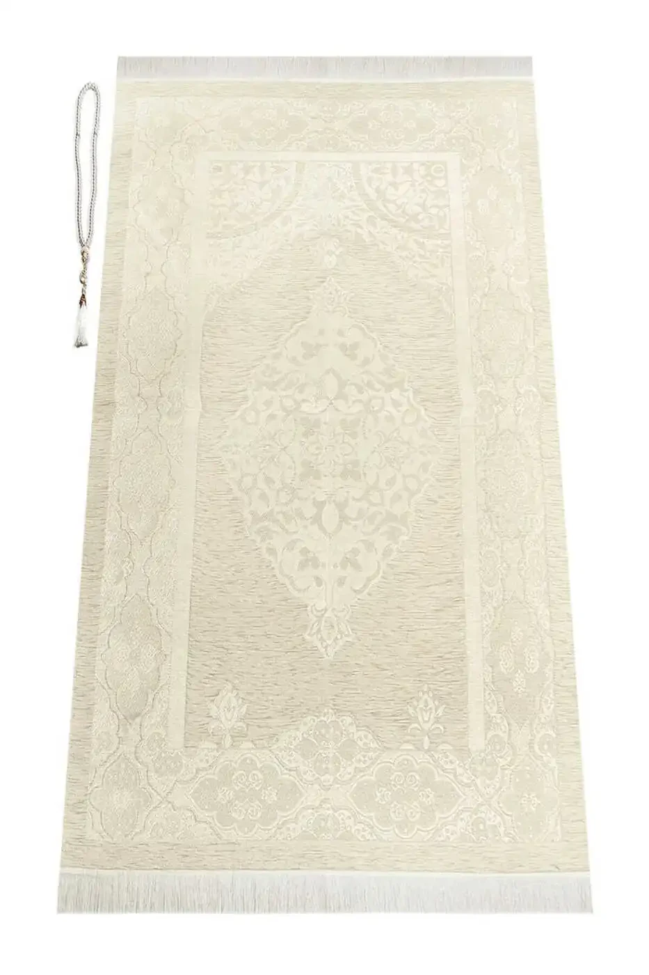 Этот изысканный набор для молитвы с деревянным сундуком станет идеальным подарком на особые случаи. Молитвенный коврик отличается мягкой текстурой и украшен элегантными мотивами на кремовом фоне. Сопутствующая шаль и Коран дополняют комплект, добавляя ценность вашим особым моментам и создавая неизгладимые воспоминания.
