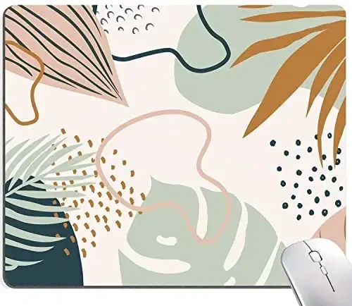 Коврик для мыши SANWUMIAN - Квадратный коврик для мыши - Милый коврик для мыши Водонепроницаемый Нескользящий Коврик для мыши с резиновой основой для офисного ноутбука, Абстрактные листья