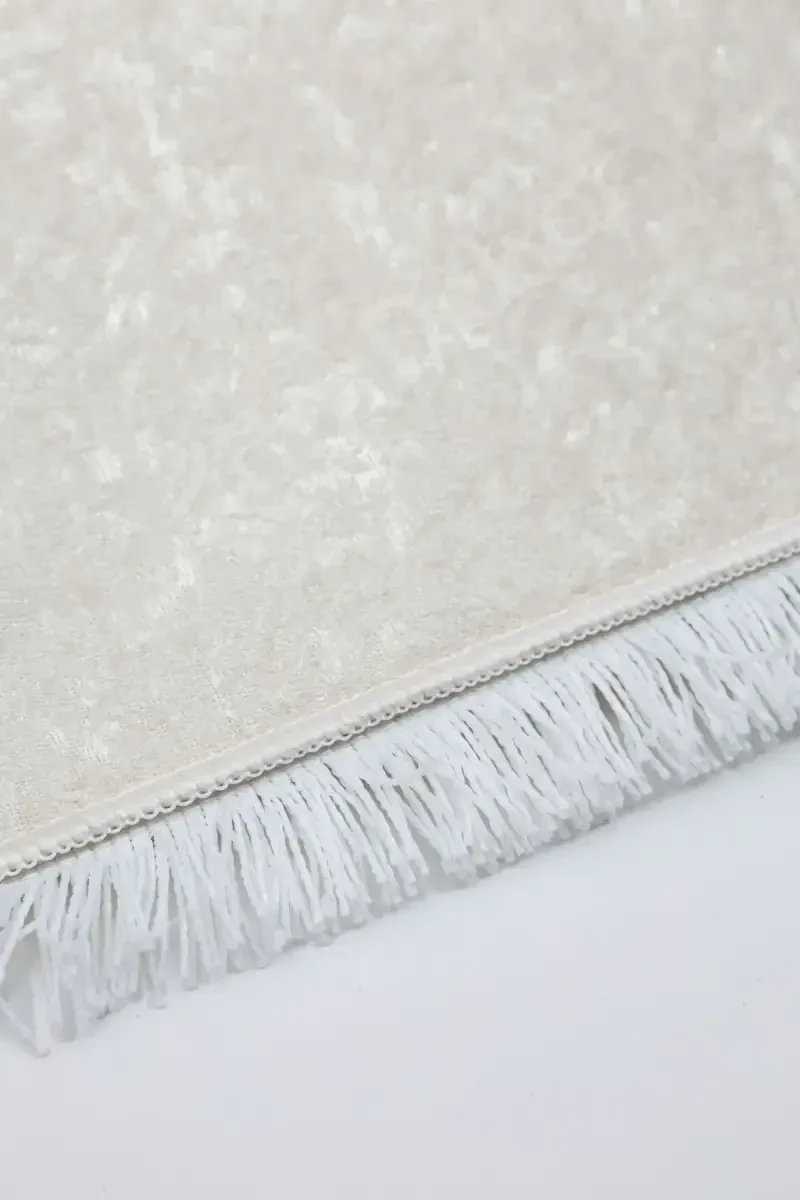 Светло-кремовый цвет создаст ощущение простора и яркости в вашем пространстве, адаптируясь к любому стилю декора. Дизайн с бахромой придает ковру элегантный вид, а также обеспечивает более надежное сцепление с полом, предотвращая скольжение.