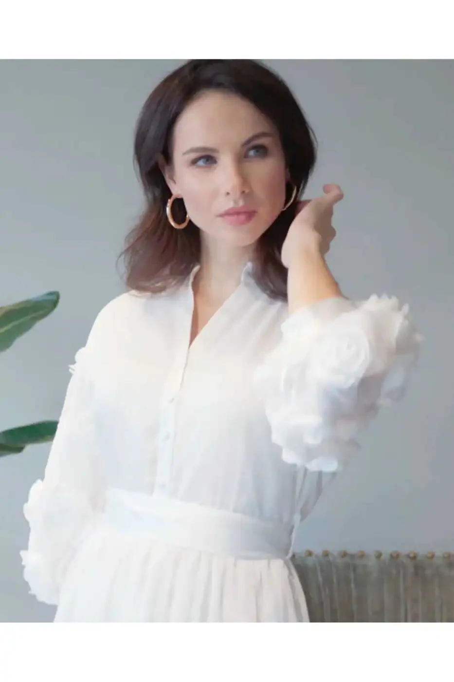 Koʻylak Yoqa Libos, 3d Gul Tafsilotlari, Ekru Libos, Uzun Libos, Ommabop Libos, Nozik Libos, Serpil Exclusive